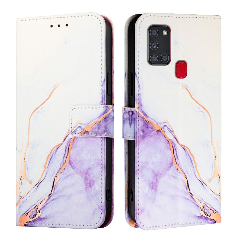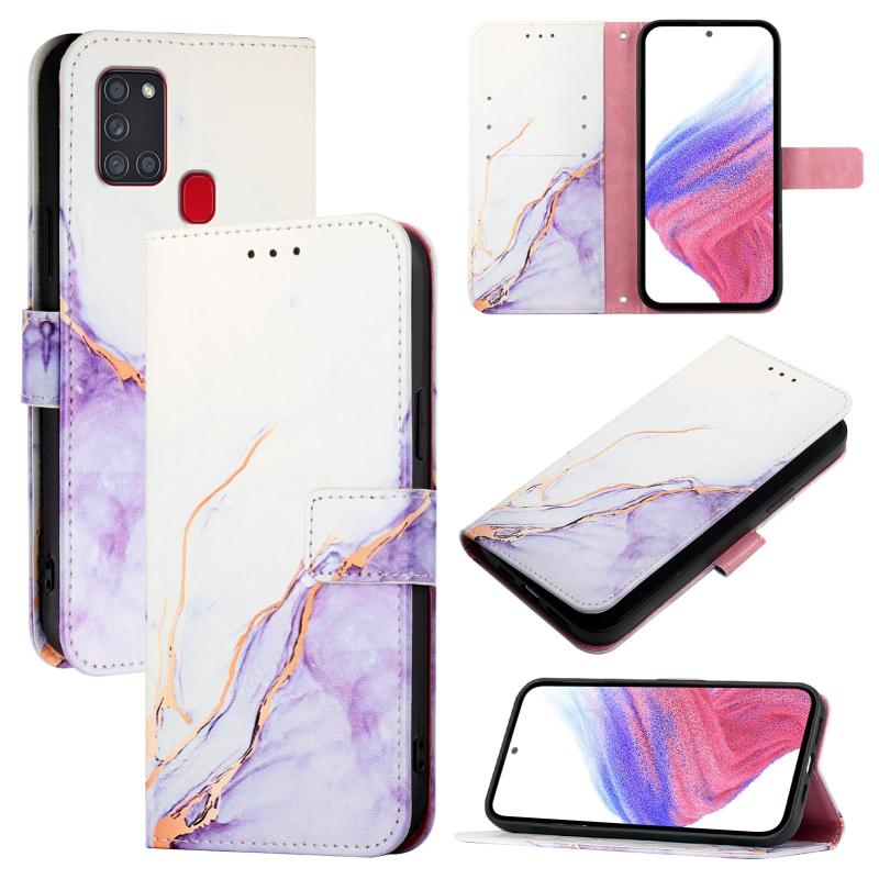 For Samsung Galaxy A21s PT003 Marble Pattern Flip Leather Phone Case(White Purple)