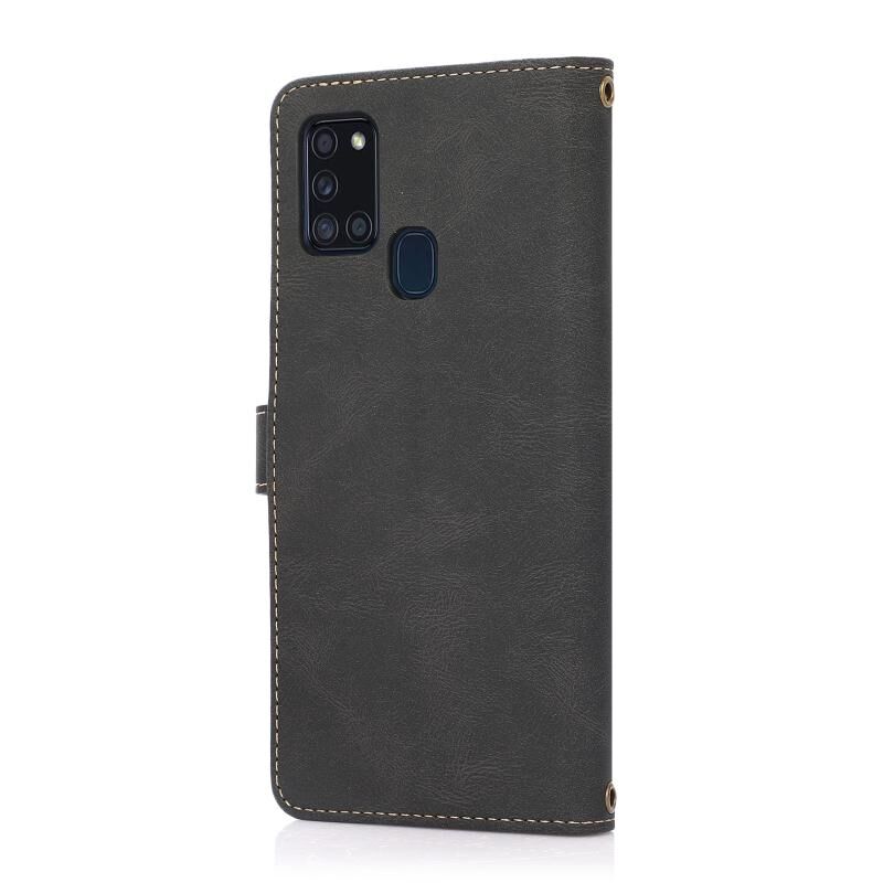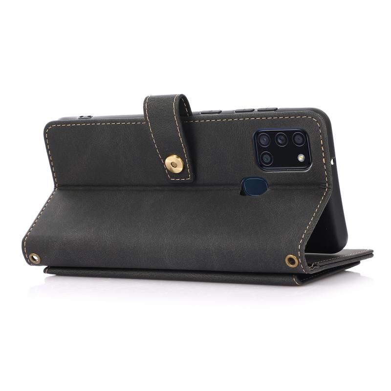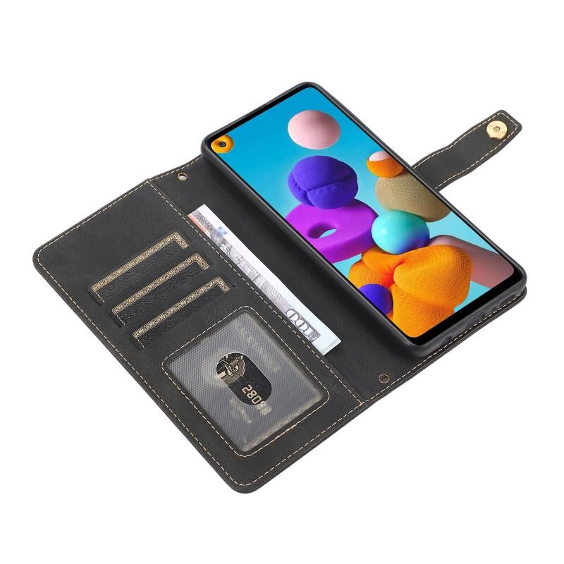 Για Samsung Galaxy A21s PU + TPU Οριζόντια Flip δερμάτινη θήκη με θήκη & υποδοχή κάρτας & πορτοφόλι & κορδόνι (Μαύρο)