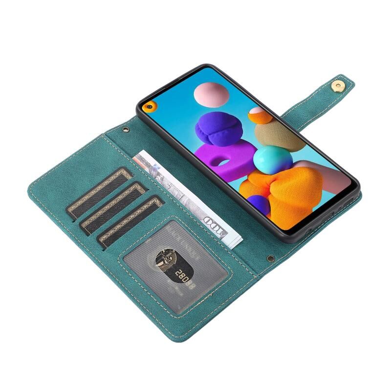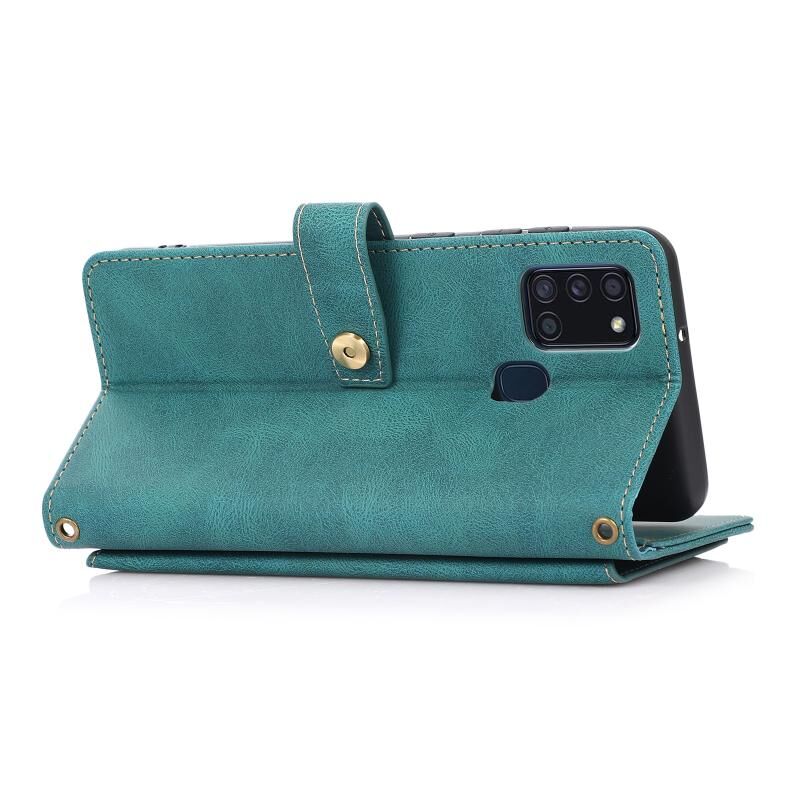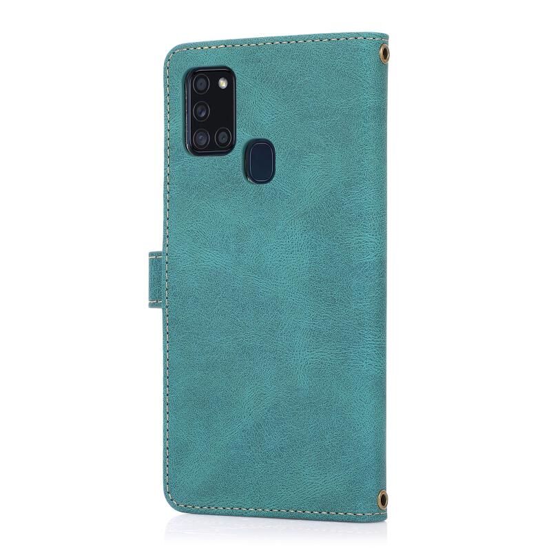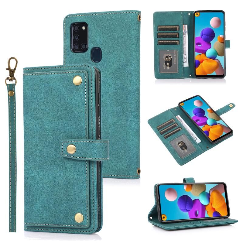 Για Samsung Galaxy A21s PU + TPU Οριζόντια Flip δερμάτινη θήκη με θήκη & υποδοχή κάρτας & πορτοφόλι & κορδόνι (Lake Blue)