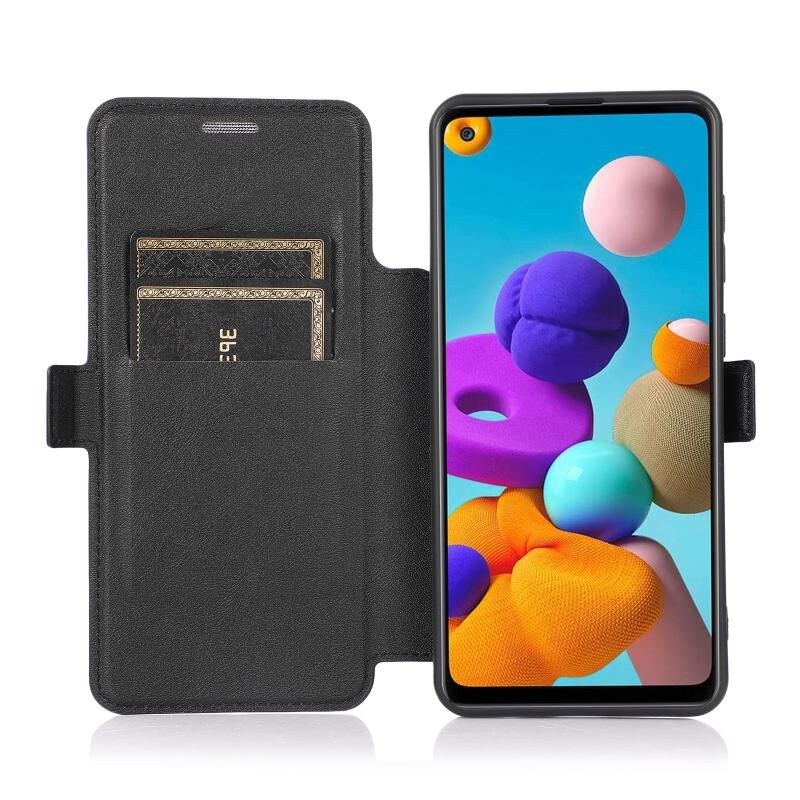 Για Samsung Galaxy A21s Push Window Διπλή πόρπη PU + σιλικόνη οριζόντια Flip δερμάτινη θήκη με θήκη & υποδοχή κάρτας (μαύρο)