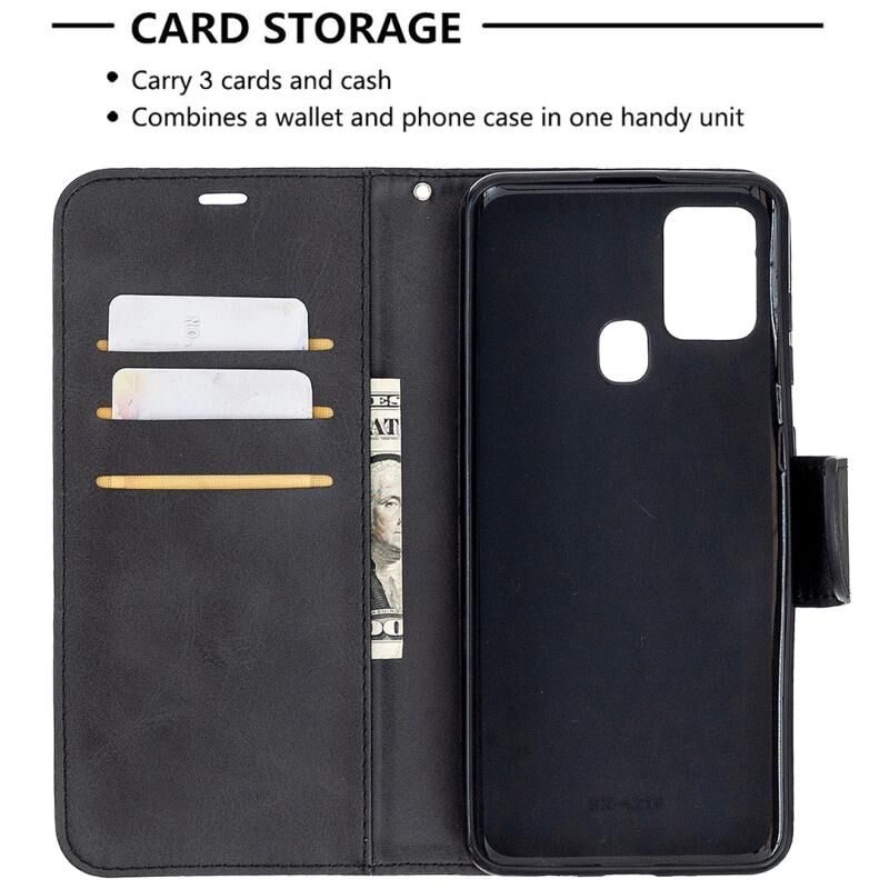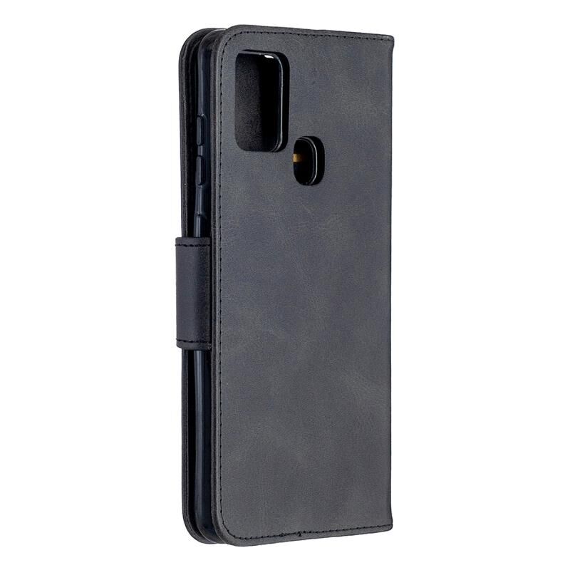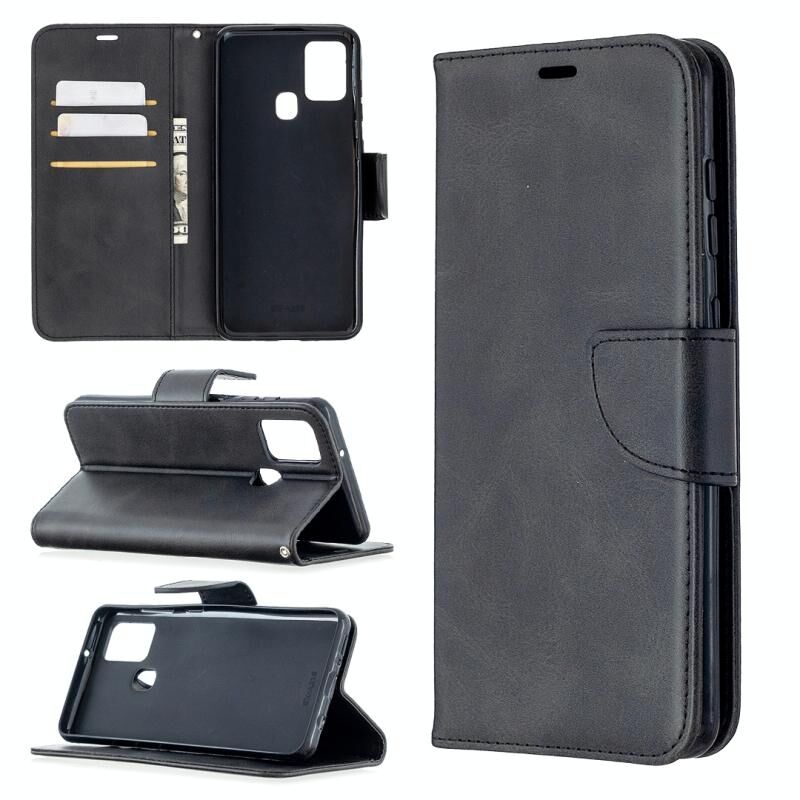 Για Samsung Galaxy A21s Retro Lambskin υφή καθαρό χρώμα οριζόντια Flip PU δέρμα υπόθεση με θήκη & υποδοχές για κάρτες & πορτοφόλι & κορδόνι (μαύρο)