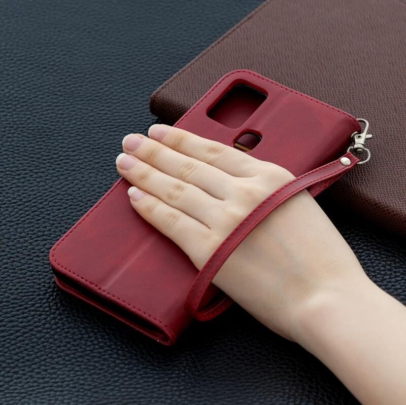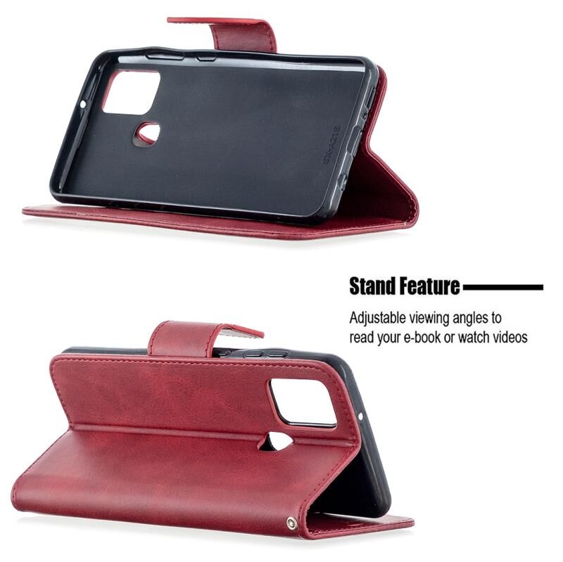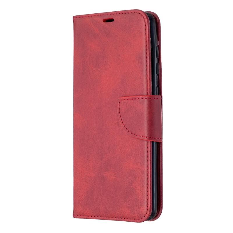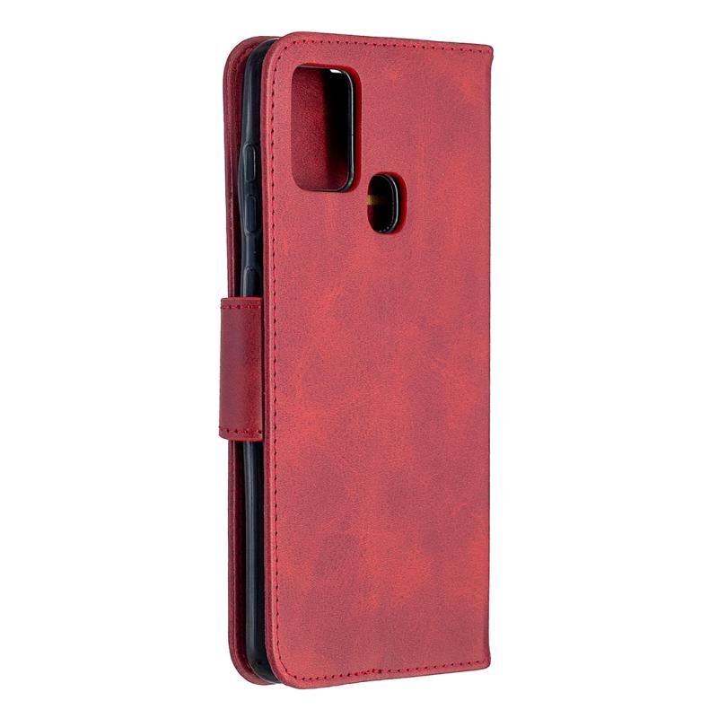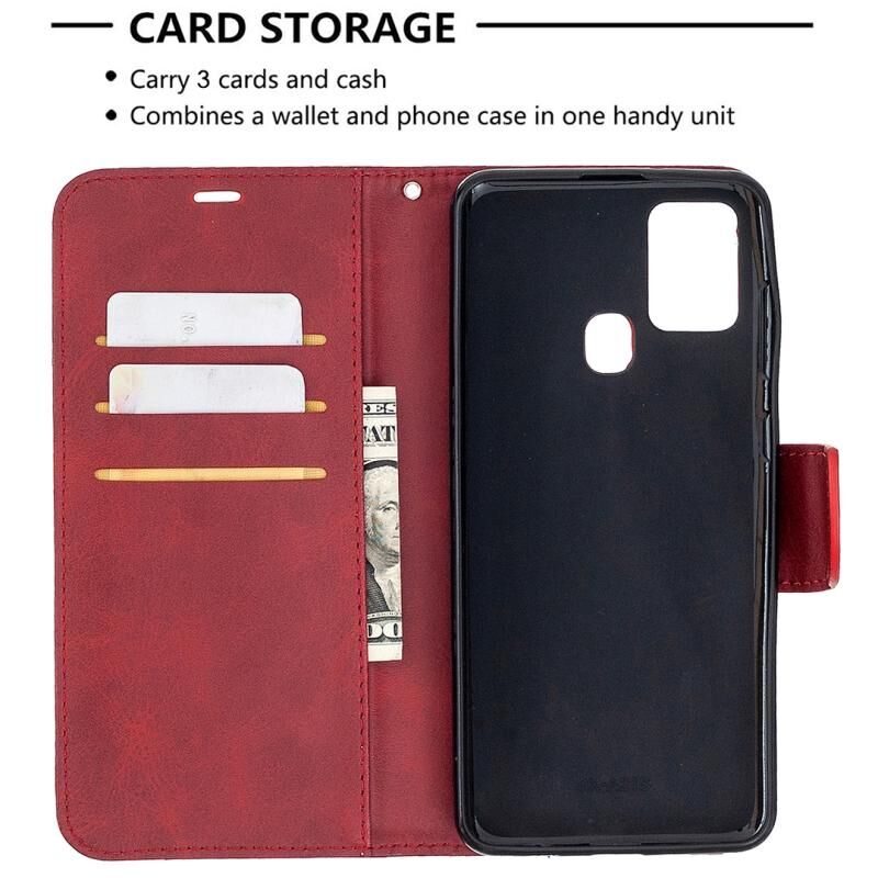 Για Samsung Galaxy A21s Retro Lambskin υφή καθαρό χρώμα οριζόντια Flip PU δέρμα υπόθεση με θήκη & υποδοχές για κάρτες & πορτοφόλι & κορδόνι (κόκκινο)