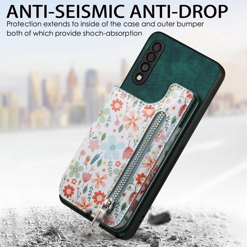 Για Samsung Galaxy A21S Ρετρό ζωγραφισμένο φερμουάρ πορτοφόλι πίσω θήκη τηλεφώνου (πράσινο)