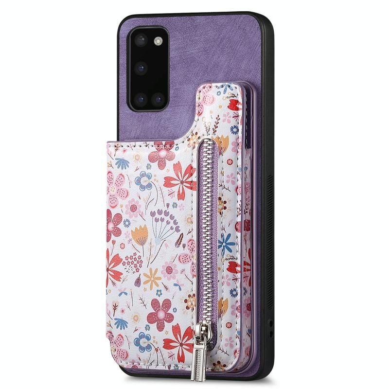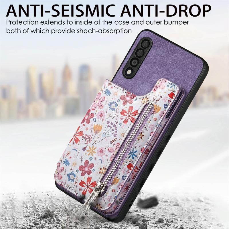 Για Samsung Galaxy A21S Ρετρό ζωγραφισμένο φερμουάρ πορτοφόλι πίσω υπόθεση τηλεφώνου (μωβ)