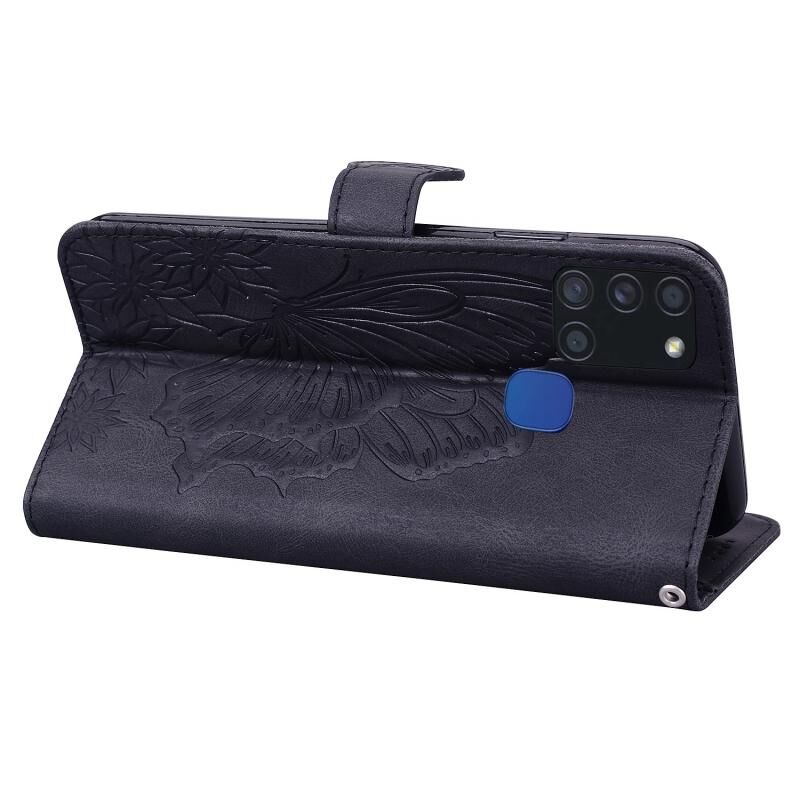 Θήκη Samsung Galaxy A21s από Δέρμα με Οριζόντιο Άνοιγμα, με Υφή Retro, ανάγλυφα σχέδια με Πεταλούδες, με Θήκη και Θήκες για Κάρτες & Πορτοφόλι (Καφέ)