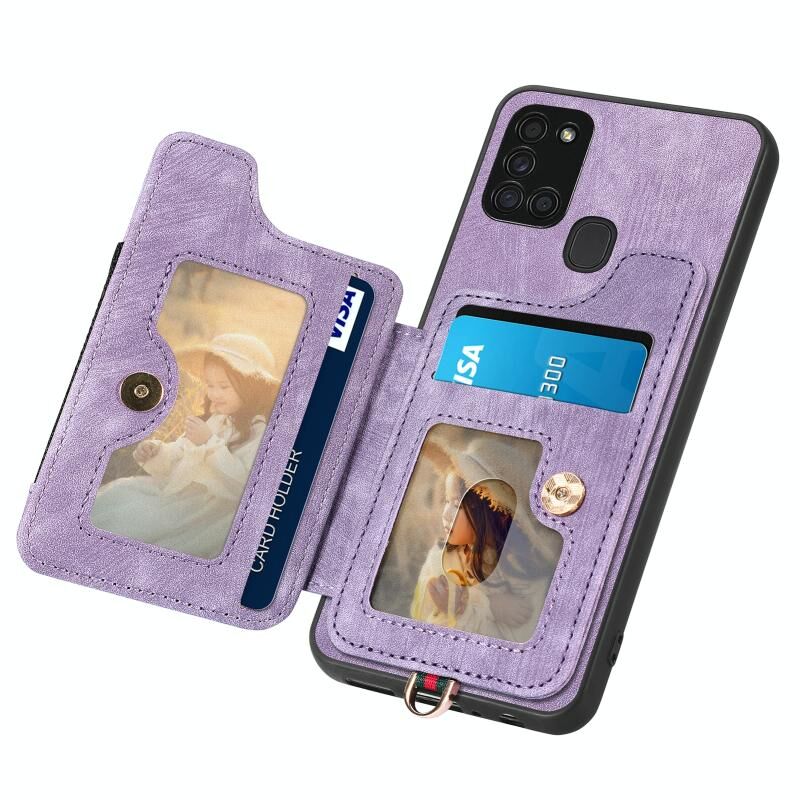 Για Samsung Galaxy A21s Ρετρό δέρμα αίσθηση δαχτυλίδι πολυ-κάρτα πορτοφόλι υπόθεση τηλεφώνου (Μωβ)