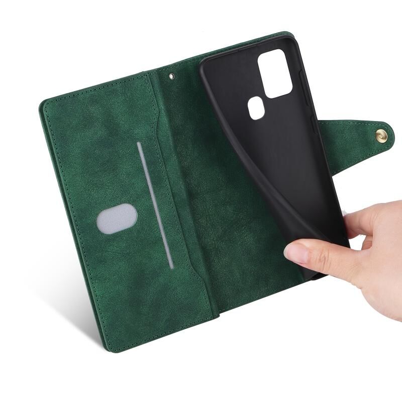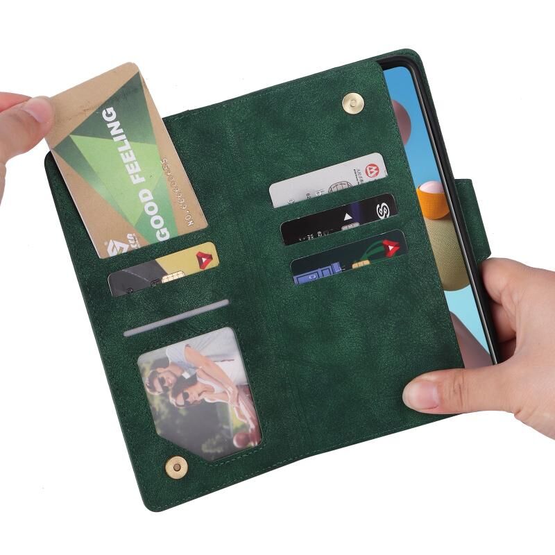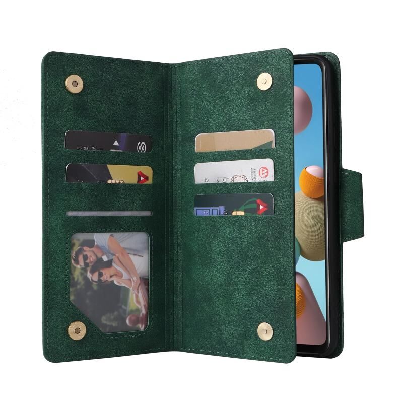 Για Samsung Galaxy A21S Rivet πόρπη 9 κάρτες τρεις φορές δερμάτινη θήκη τηλεφώνου (πράσινο)
