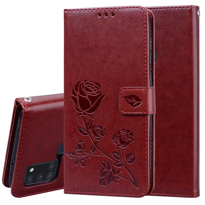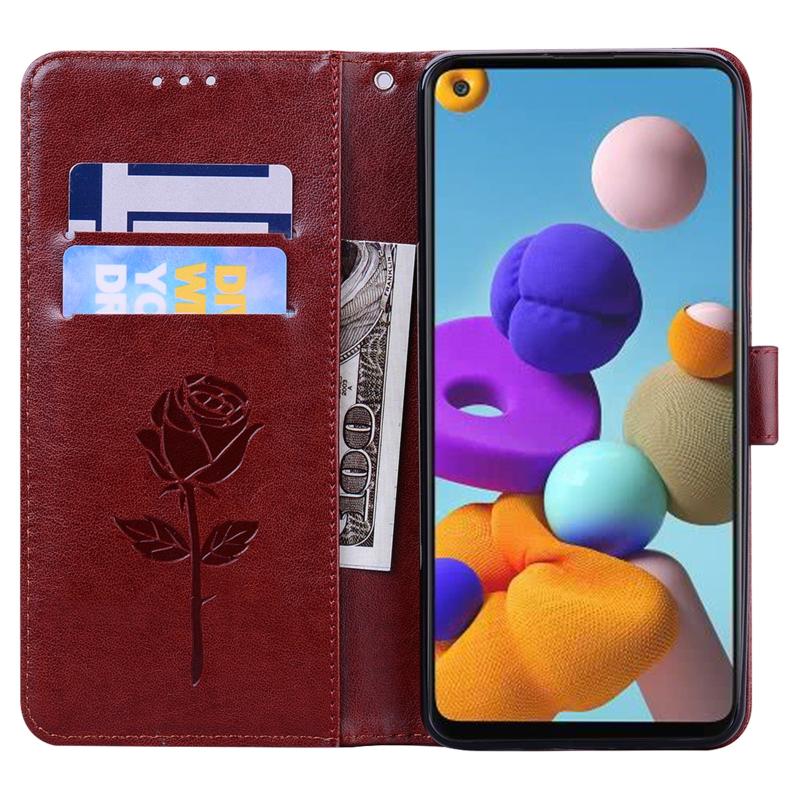 Θήκη Samsung Galaxy A21s Rose Embossed Οριζόντια Δερμάτινη PU με Θήκη & Θήκες Καρτών & Πορτοφόλι (Χρυσό)