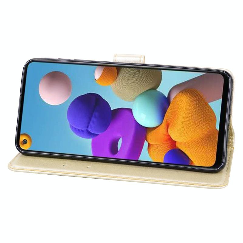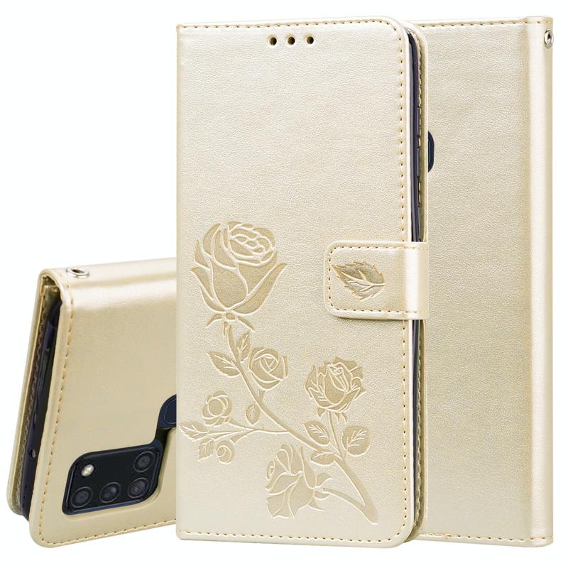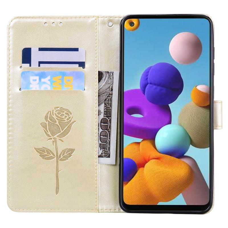 Θήκη Samsung Galaxy A21s Rose Embossed Οριζόντια Δερμάτινη PU με Θήκη & Θήκες Καρτών & Πορτοφόλι (Χρυσό)
