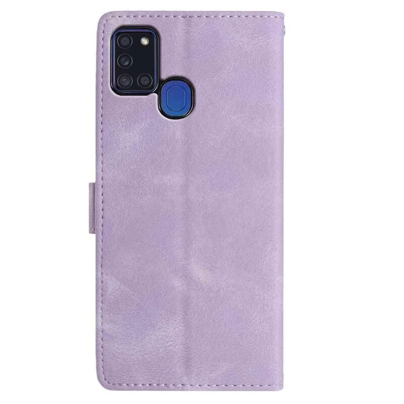 Θήκη τηλεφώνου δερμάτινη με ανάγλυφο σχέδιο ροζ λουλουδιού για Samsung Galaxy A21S (Ροζ Χρυσό)