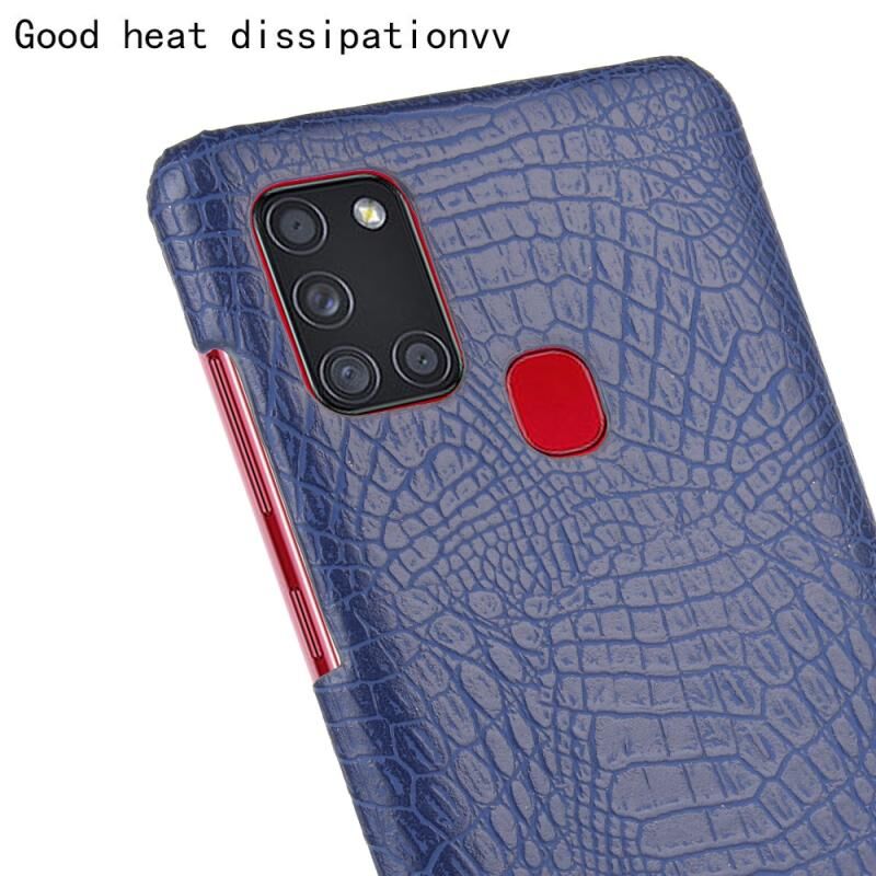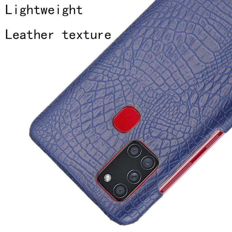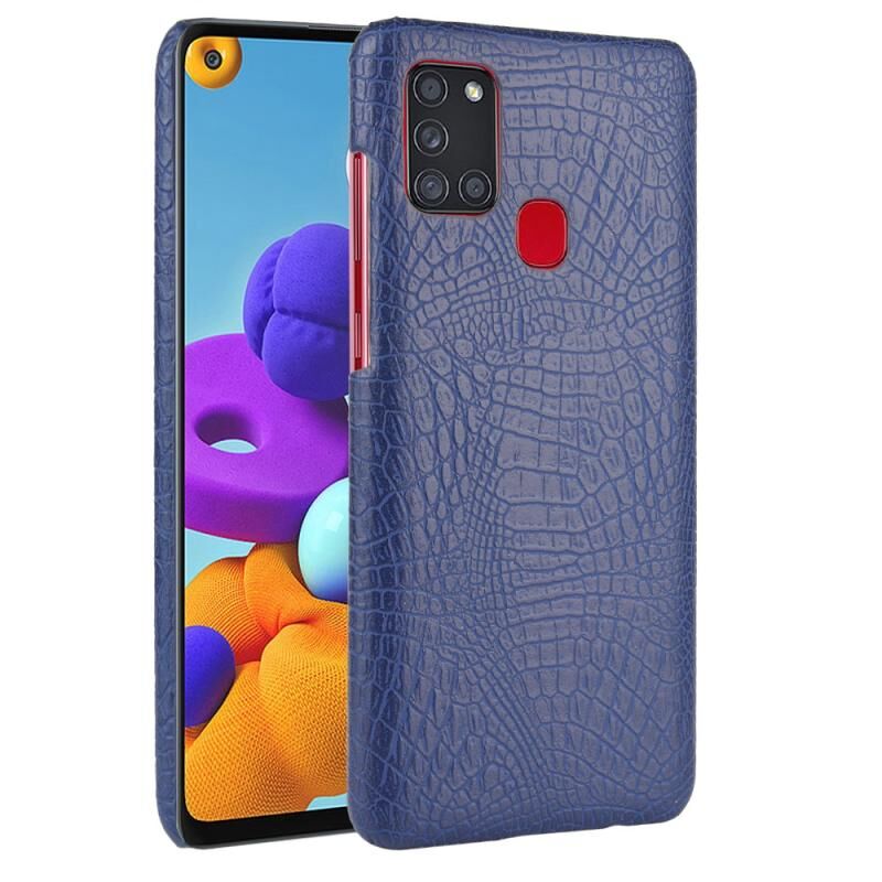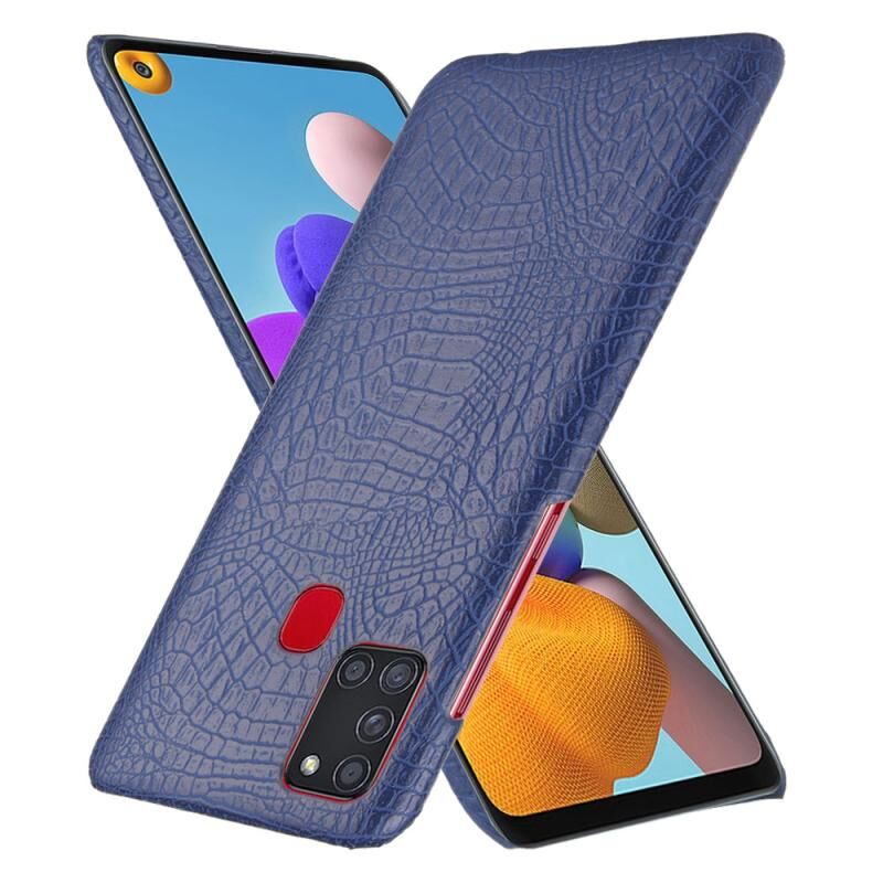 Για το Samsung Galaxy A21s Αδιάβροχο κροκόδειλο υφή PC + PU υπόθεση (μπλε)