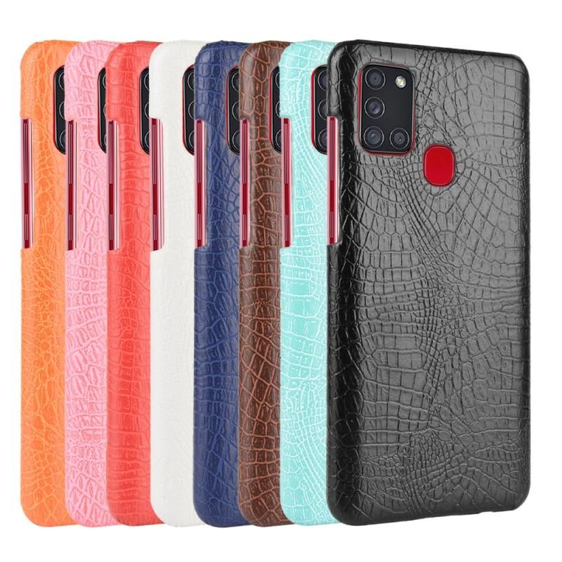 Για το Samsung Galaxy A21s Αδιάβροχο κροκόδειλο υφή PC + PU υπόθεση (καφέ)