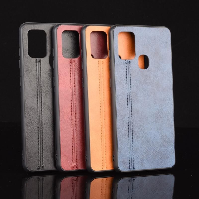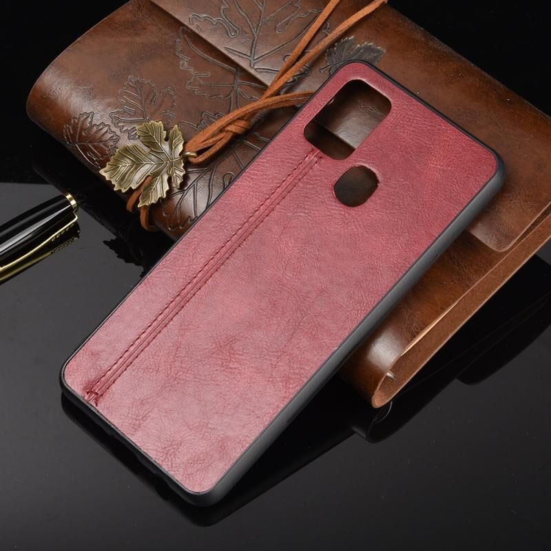 Για Samsung Galaxy A21s Shockproof Ράψιμο μοτίβο αγελάδας δέρμα PC + PU + TPU υπόθεση (κόκκινο)