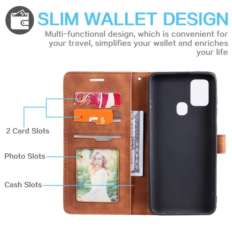 Για Samsung Galaxy A21s δέρμα αίσθηση Anti-theft βούρτσα οριζόντια Flip δέρμα τηλέφωνο υπόθεση (καφέ)