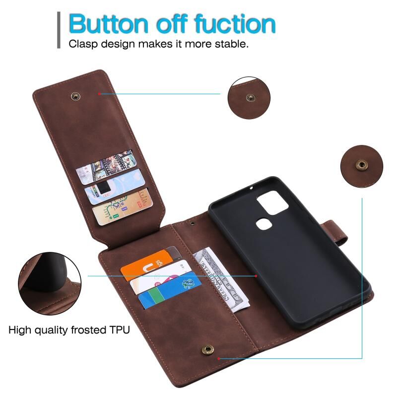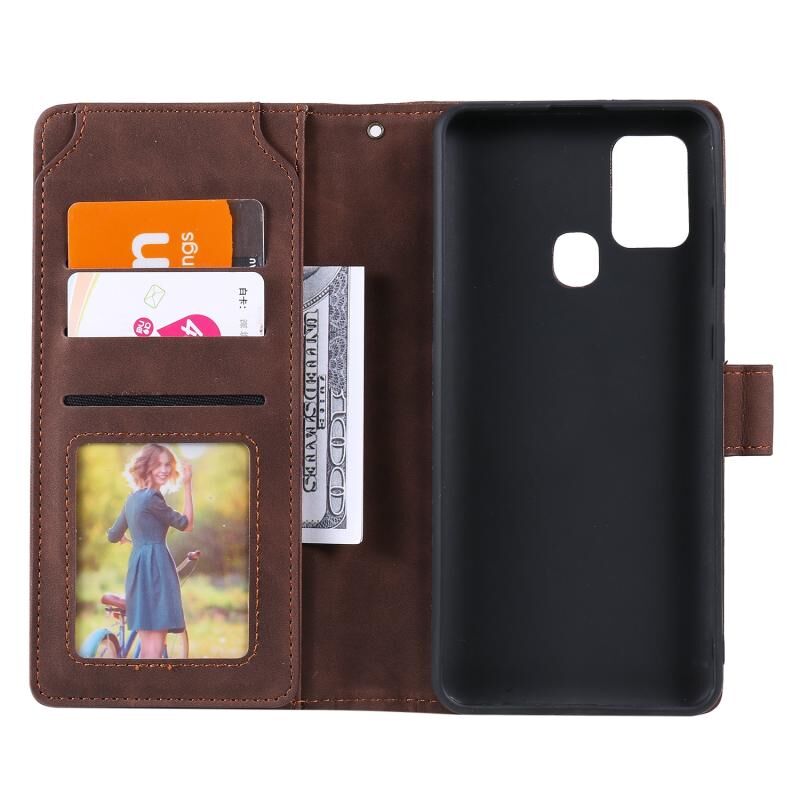 Για Samsung Galaxy A21s Skin Feel Business Οριζόντια Flip PU δέρμα υπόθεση με θήκη & υποδοχές πολλαπλών καρτών & πορτοφόλι & κορδόνι & κορνίζα & πλαίσιο φωτογραφιών (καφέ)