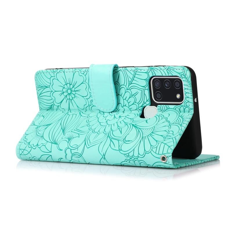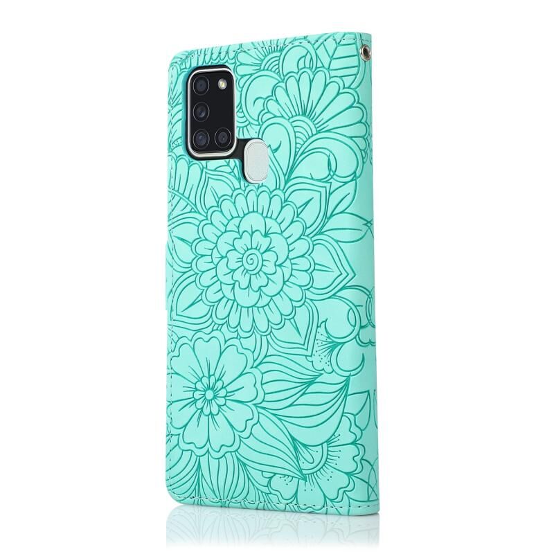 Για Samsung Galaxy A21s δέρμα αίσθηση ανάγλυφο ηλιοτρόπιο οριζόντια Flip δερμάτινη θήκη με υποδοχές για κάρτες & υποδοχές & πορτοφόλι & κορδόνι (πράσινο)