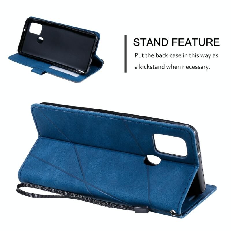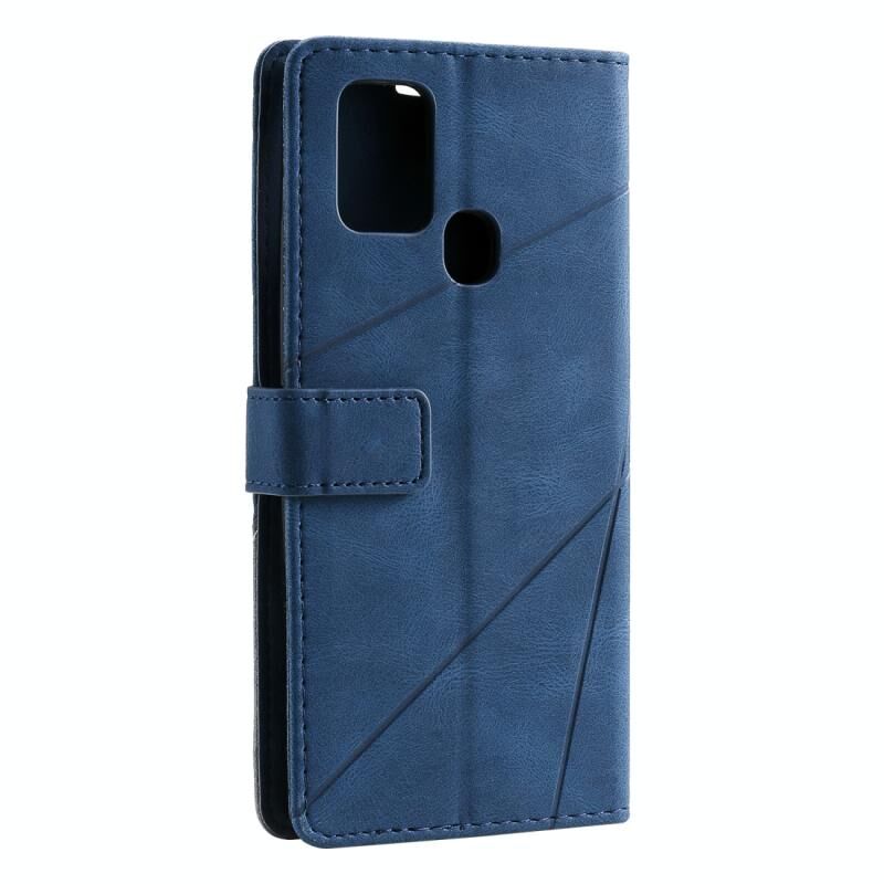 Για Samsung Galaxy A21s δέρμα αίσθηση Splicing οριζόντια Flip δερμάτινη θήκη με υποδοχές για κάρτες & θήκες & πορτοφόλι & πλαίσιο φωτογραφιών (μπλε)