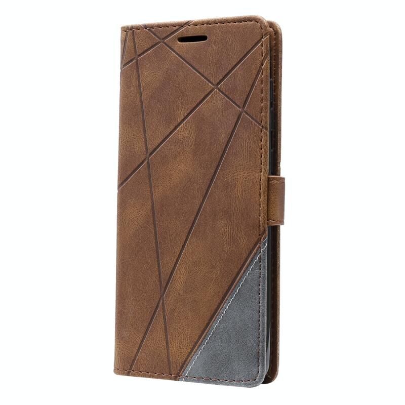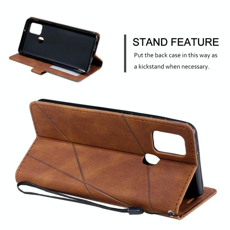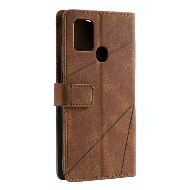 Για Samsung Galaxy A21s δέρμα αίσθηση Splicing οριζόντια Flip δερμάτινη θήκη με υποδοχές για κάρτες & θήκες & πορτοφόλι & πλαίσιο φωτογραφιών (καφέ)