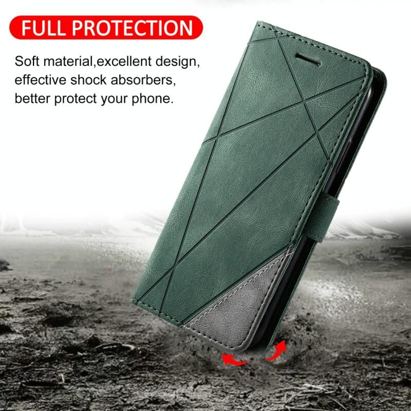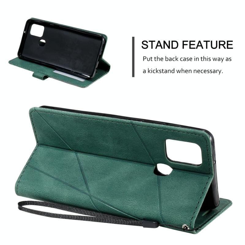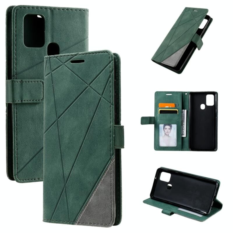 Για Samsung Galaxy A21s δέρμα αίσθηση Splicing οριζόντια Flip δερμάτινη θήκη με υποδοχές για κάρτες & θήκες & πορτοφόλι & πλαίσιο φωτογραφιών (πράσινο)