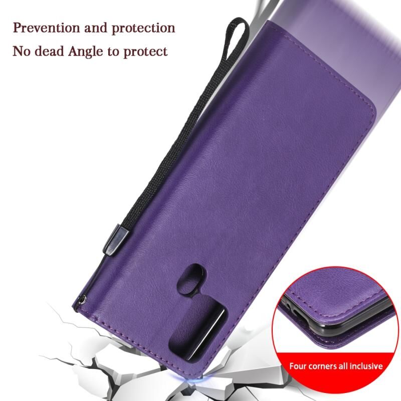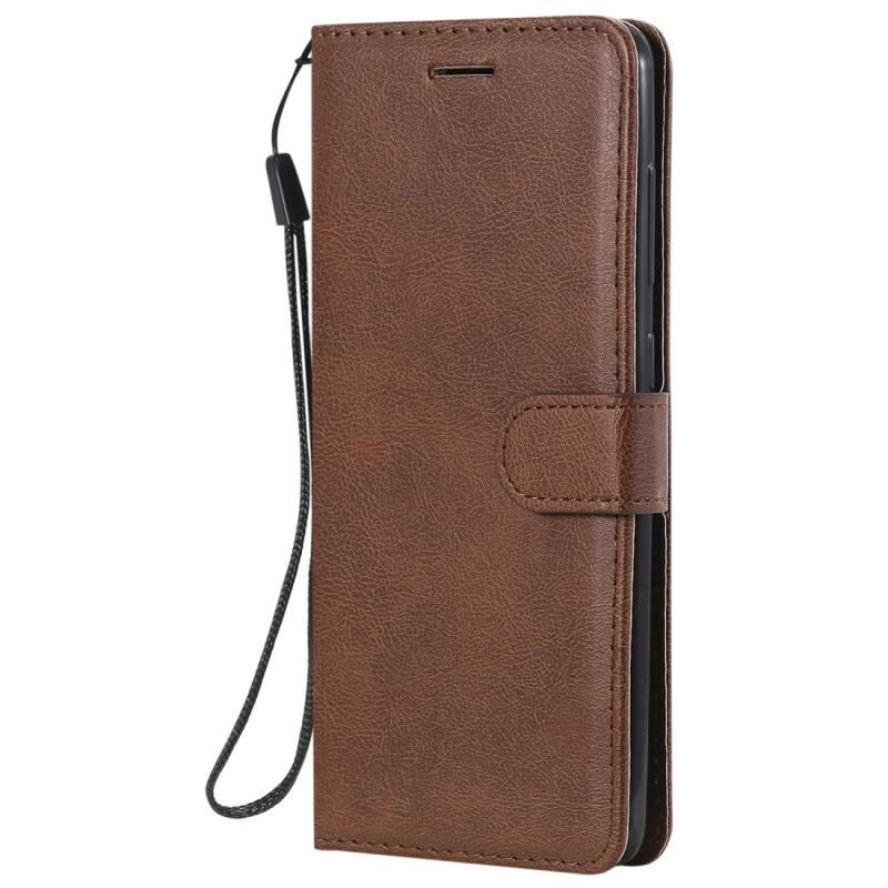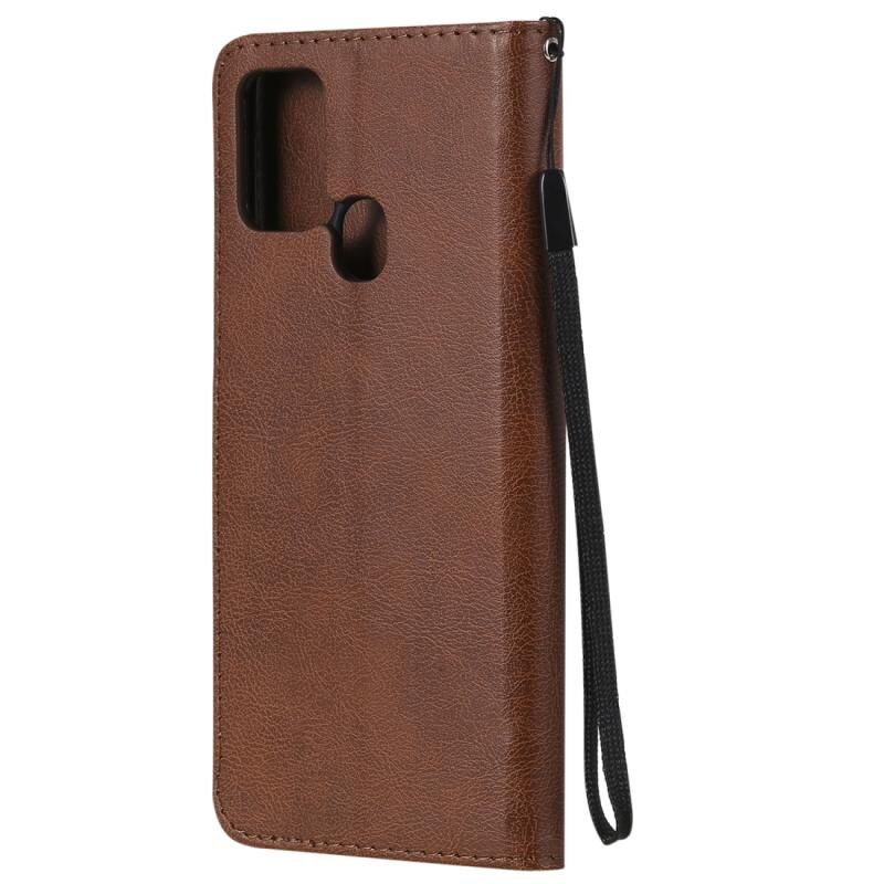 Για Samsung Galaxy A21s Αμιγές χρώμα οριζόντια Flip προστατευτική δερμάτινη θήκη με θήκη & υποδοχές για κάρτες & πορτοφόλι & κορνίζα φωτογραφιών & κορδόνι (Καφέ)