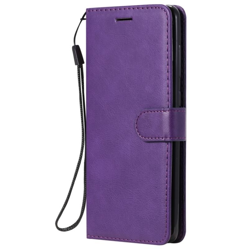 Για Samsung Galaxy A21s Αμιγές χρώμα οριζόντια Flip προστατευτική δερμάτινη θήκη με θήκη & υποδοχές για κάρτες & πορτοφόλι & κορνίζα φωτογραφιών & κορδόνι (μωβ)