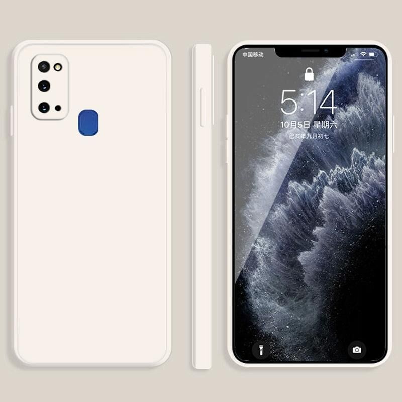Για Samsung Galaxy A21s Solid Color Απομίμηση υγρού σιλικόνης Straight Edge Dropproof Full Coverage Προστατευτική θήκη (Λευκό)
