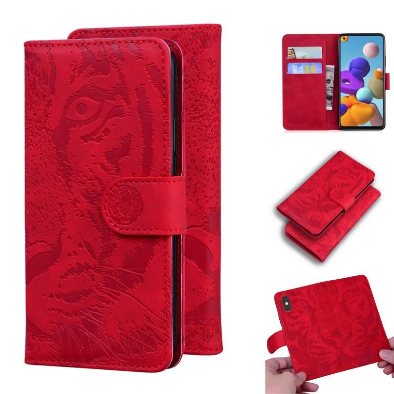 Θήκη Samsung Galaxy A21s από Δέρμα με Οριζόντιο Άνοιγμα, με ανάγλυφο σχέδιο τίγρης, Θήκη για Κάρτες & Χαρτονομίσματα (Καφέ)