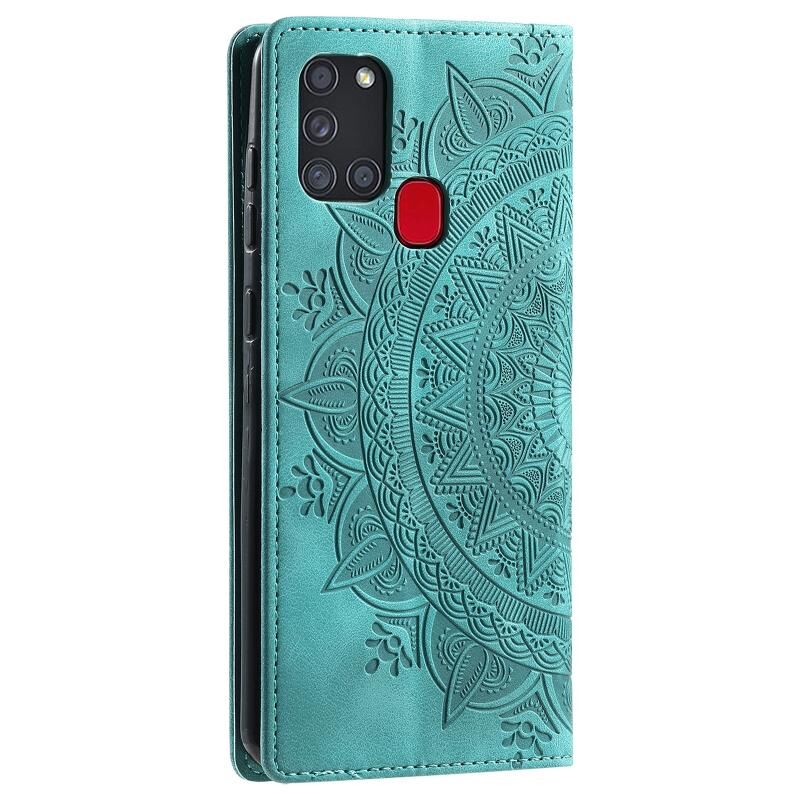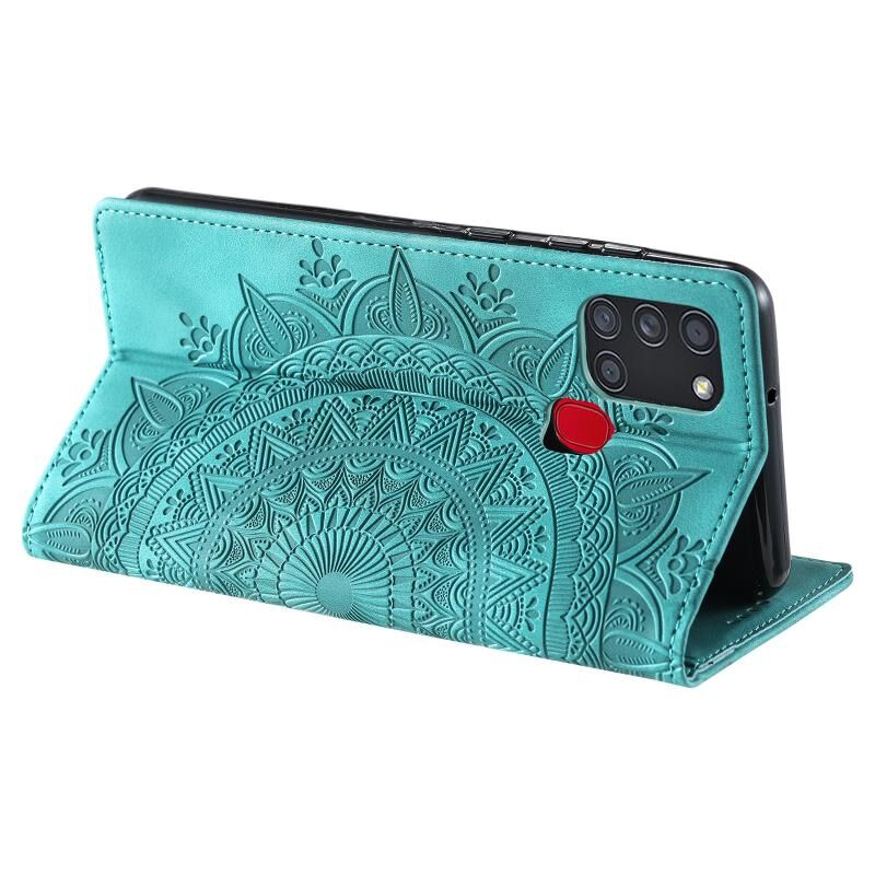 Για Samsung Galaxy A21s Totem ανάγλυφη μαγνητική δερμάτινη θήκη τηλεφώνου (πράσινο)