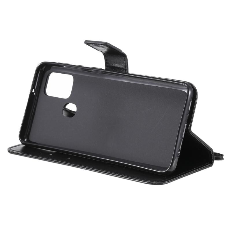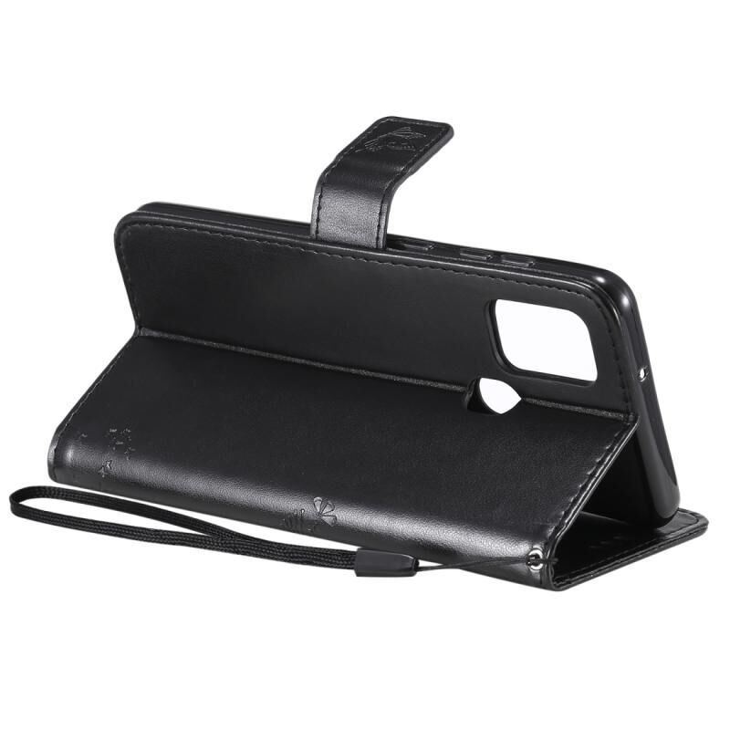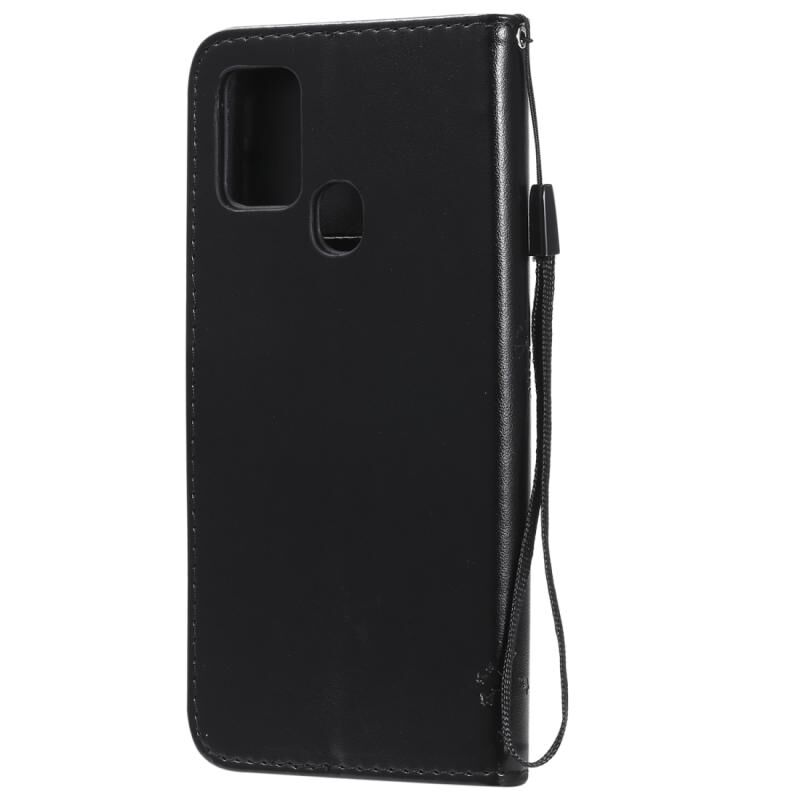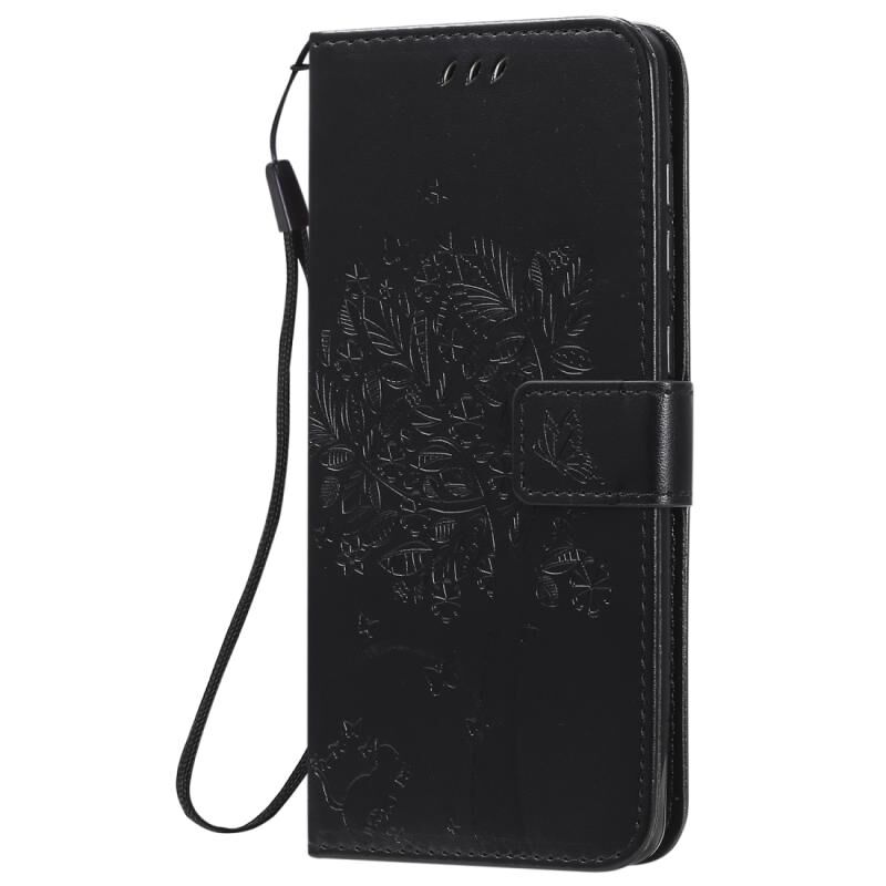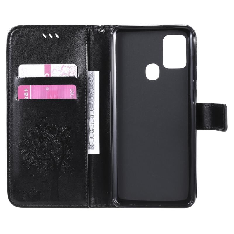 Για Samsung Galaxy A21s Tree & Cat ανάγλυφο μοτίβο οριζόντια Flip δερμάτινη θήκη με θήκη & υποδοχές για κάρτες & πορτοφόλι & κορδόνι (Μαύρο)