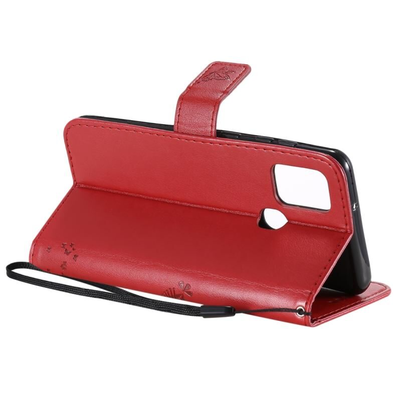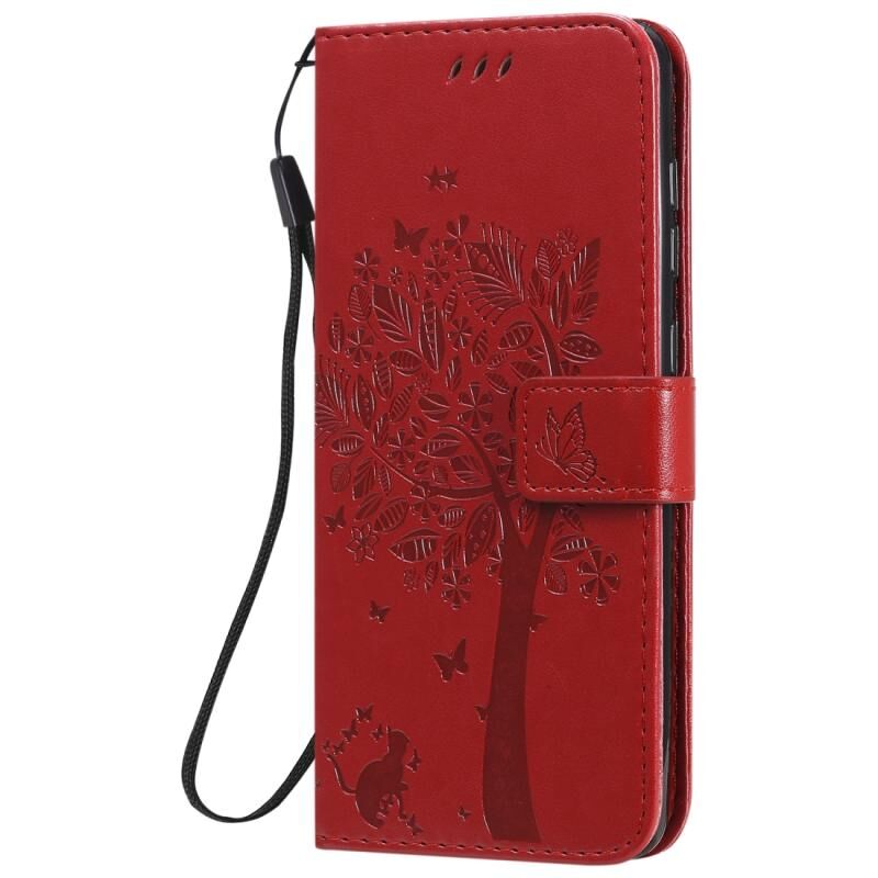 Για Samsung Galaxy A21s Tree & Cat ανάγλυφο μοτίβο οριζόντια Flip δερμάτινη θήκη με θήκη & υποδοχές για κάρτες & πορτοφόλι & κορδόνι (Κόκκινο)