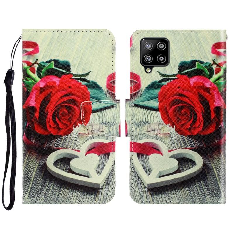 Θήκη τηλεφώνου Samsung Galaxy A22 4G 3D με έγχρωμο σχέδιο, οριζόντια αναδιπλούμενη από δέρμα με βάση στήριξης & θήκες για κάρτες & πορτοφόλι (Κόκκινο Ρόδο)