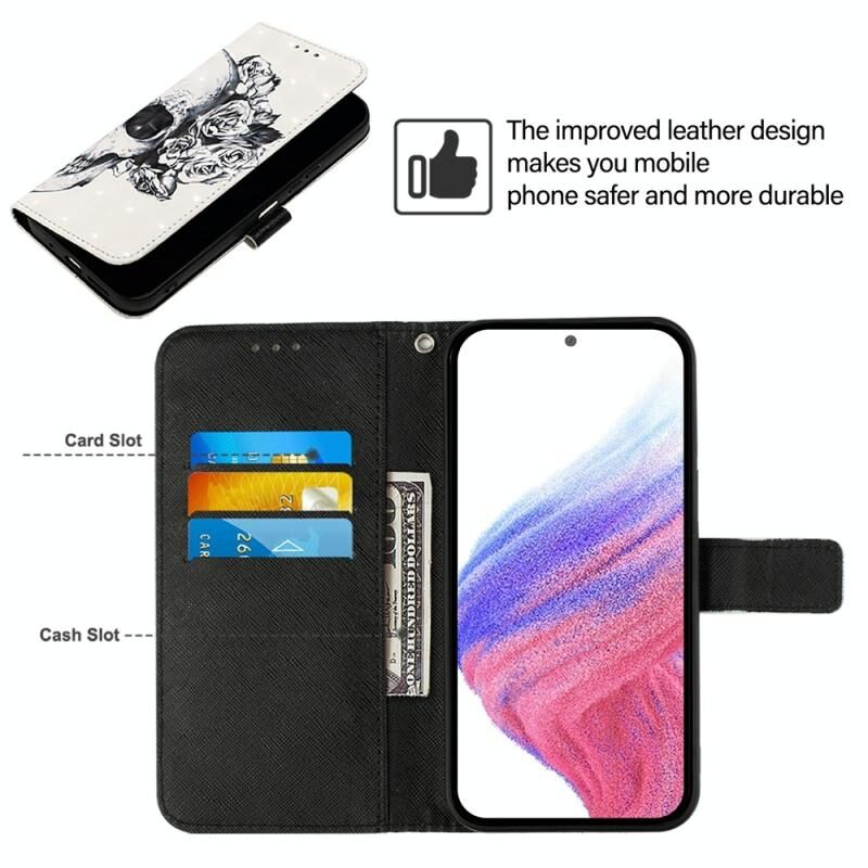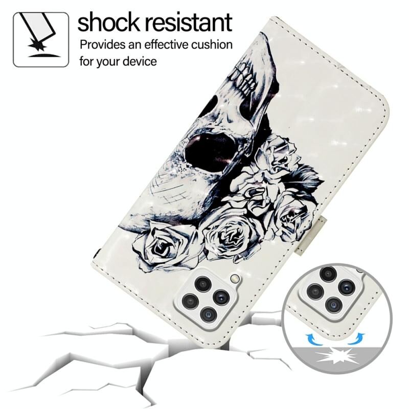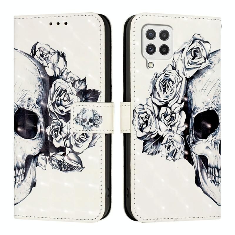 Θήκη τηλεφώνου Samsung Galaxy A22 4G 3D ζωγραφικής, οριζόντια αναδιπλούμενη, δερμάτινη (Κρανίο)