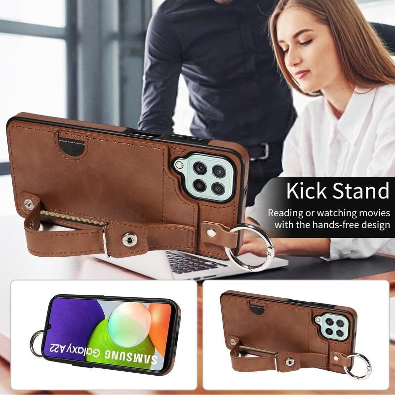 Για Samsung Galaxy A22 4G μοσχάρι Υφή καρπού κάρτα υποδοχή δαχτυλίδι υπόθεση τηλεφώνου (καφέ)
