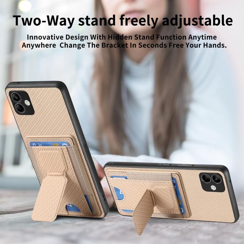Για Samsung Galaxy A22 4G ίνες άνθρακα Fiber Fold Stand ελαστική κάρτα τσάντα υπόθεση τηλεφώνου (χακί)
