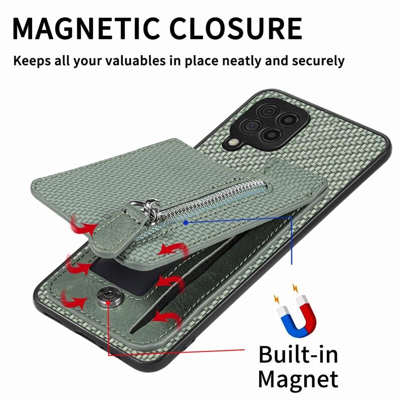 Για Samsung Galaxy A22 4G Carbon Fiber Κάθετη Flip φερμουάρ Wallet υπόθεση τηλεφώνου (Μαύρο)