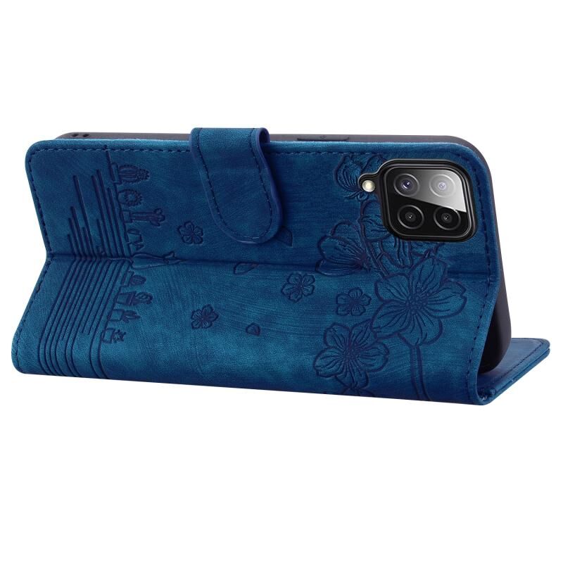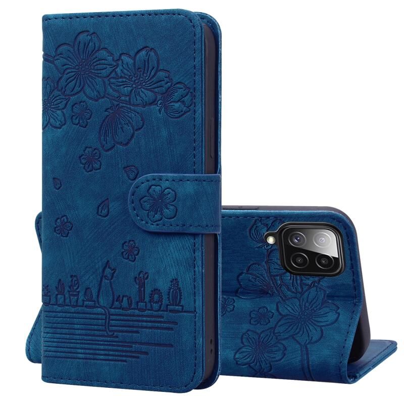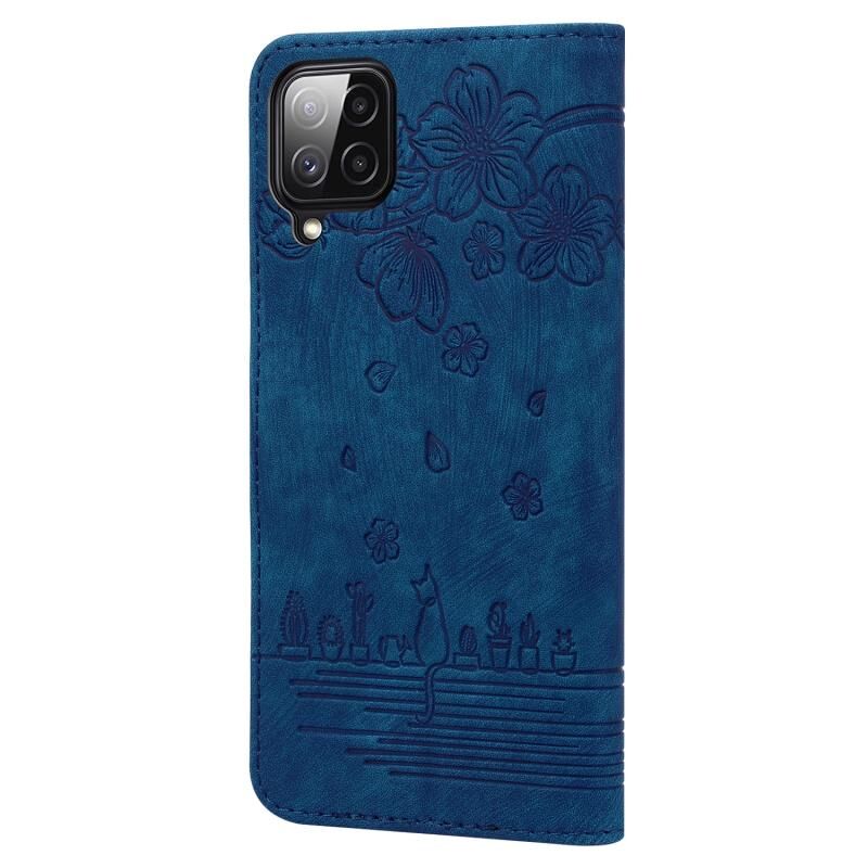 Θήκη τηλεφώνου Samsung Galaxy A22 4G, σχέδιο καρτούν Sakura Cat, ανάγλυφο δέρμα (Βασιλικό Μπλε)