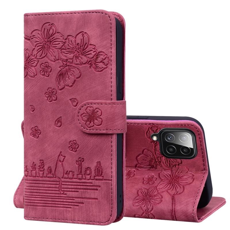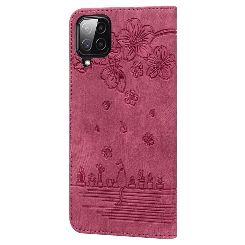Θήκη τηλεφώνου Samsung Galaxy A22 4G, σχέδιο καρτούν Sakura Cat, ανάγλυφο δέρμα (Βασιλικό Μπλε)
