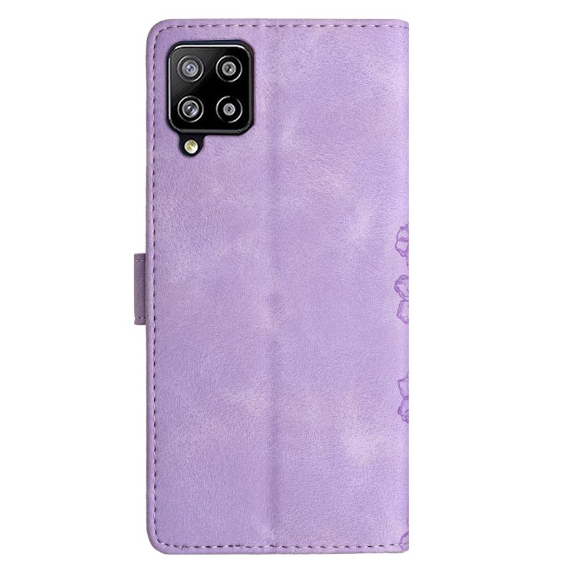 For Samsung Galaxy A22 4G Cherry Blossom Butterfly Skin Feel Embossed PU Phone Case(Purple)