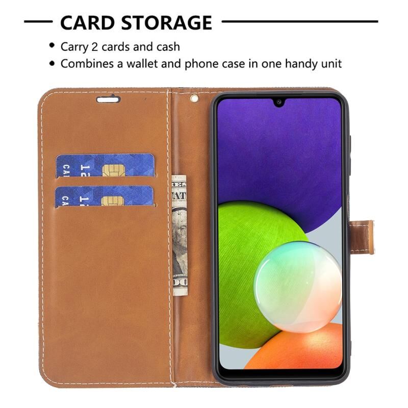 Για Samsung Galaxy A22 4G χρώμα ταιριάζει Denim υφή οριζόντια Flip δερμάτινη θήκη τηλεφώνου με θήκη & υποδοχές για κάρτες & πορτοφόλι & κορδόνι (σκούρο μπλε)