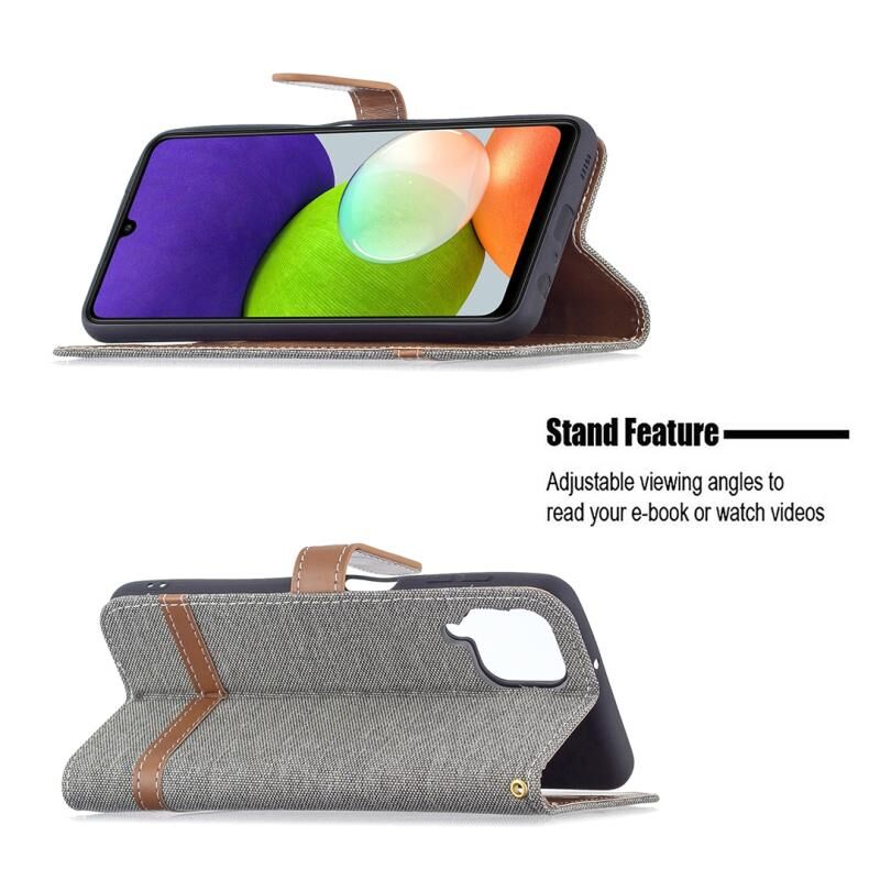 Για Samsung Galaxy A22 4G χρώμα ταιριάζει Denim υφή οριζόντια Flip δερμάτινη θήκη τηλεφώνου με θήκη & υποδοχές για κάρτες & πορτοφόλι & κορδόνι (γκρι)