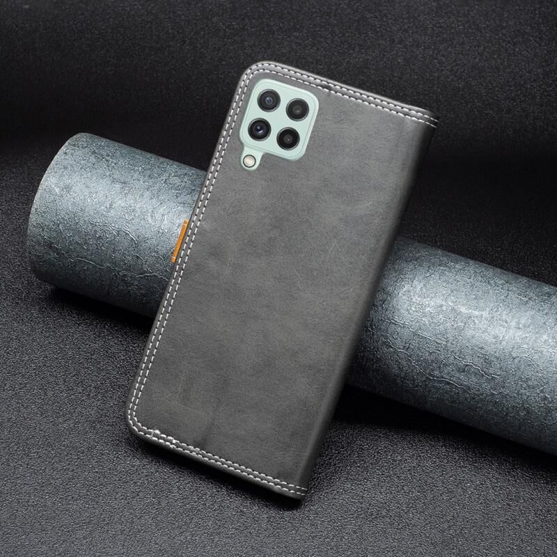 Θήκη τηλεφώνου Samsung Galaxy A22 4G από δέρμα με διπλή ραφή και αντιστοίχιση χρωμάτων (Μαύρο)