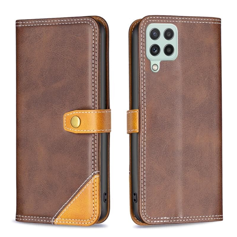 Θήκη τηλεφώνου Samsung Galaxy A22 4G από δέρμα με διπλή ραφή και αντιστοίχιση χρωμάτων (Μαύρο)