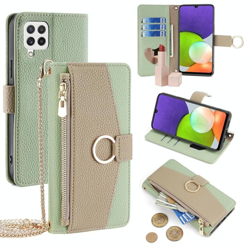 Για Samsung Galaxy A22 4G Crossbody Litchi Υφή δερμάτινη θήκη τηλεφώνου (πράσινο)