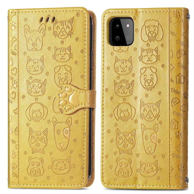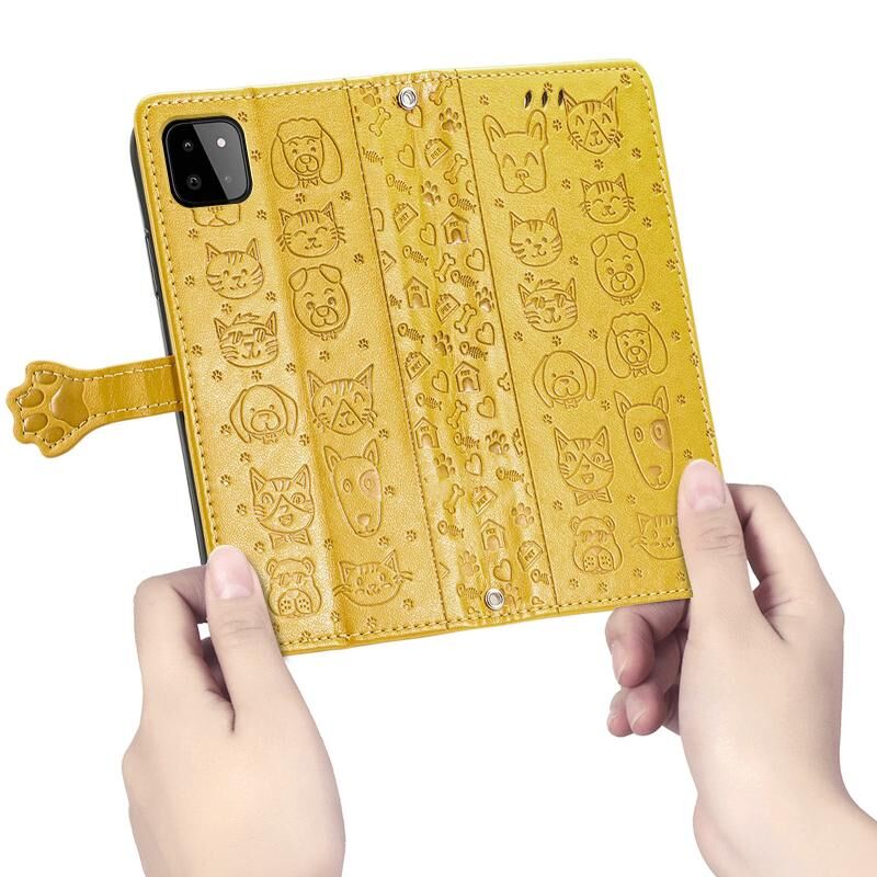 Θήκη Samsung Galaxy A22 4G, χαριτωμένη ανάγλυφη θήκη flip από δέρμα με σχέδια γάτας και σκύλου, με βάση στήριξης, θήκες για κάρτες, πορτοφόλι, λουρί crossbody και κάλυμμα καρτών (Ροζ)