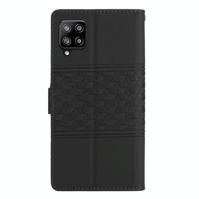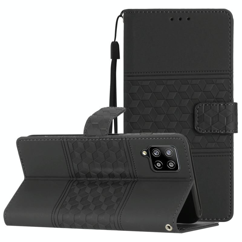 Για Samsung Galaxy A22 4G Diamond ανάγλυφο δέρμα αίσθηση δέρμα τηλέφωνο υπόθεση με κορδόνι (μαύρο)