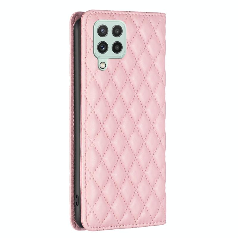 Θήκη τηλεφώνου Samsung Galaxy A22 4G, Δερμάτινη, Πτυσσόμενη, Μαγνητική, με σχέδιο Διαμαντόπλεγμα (Μαύρο)