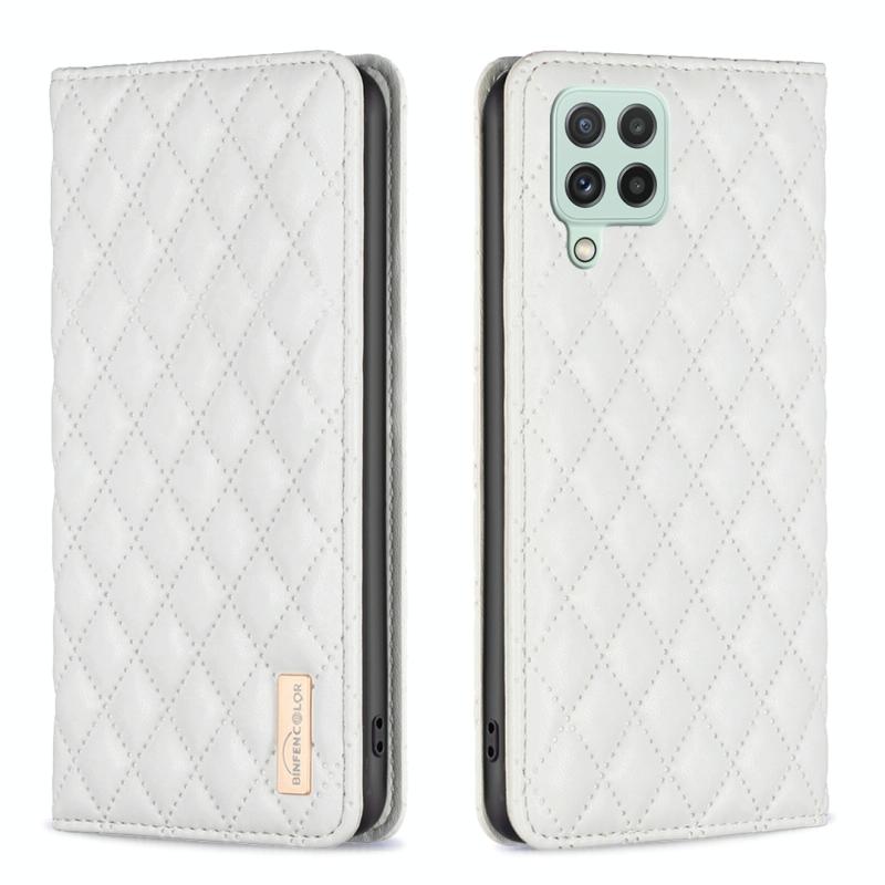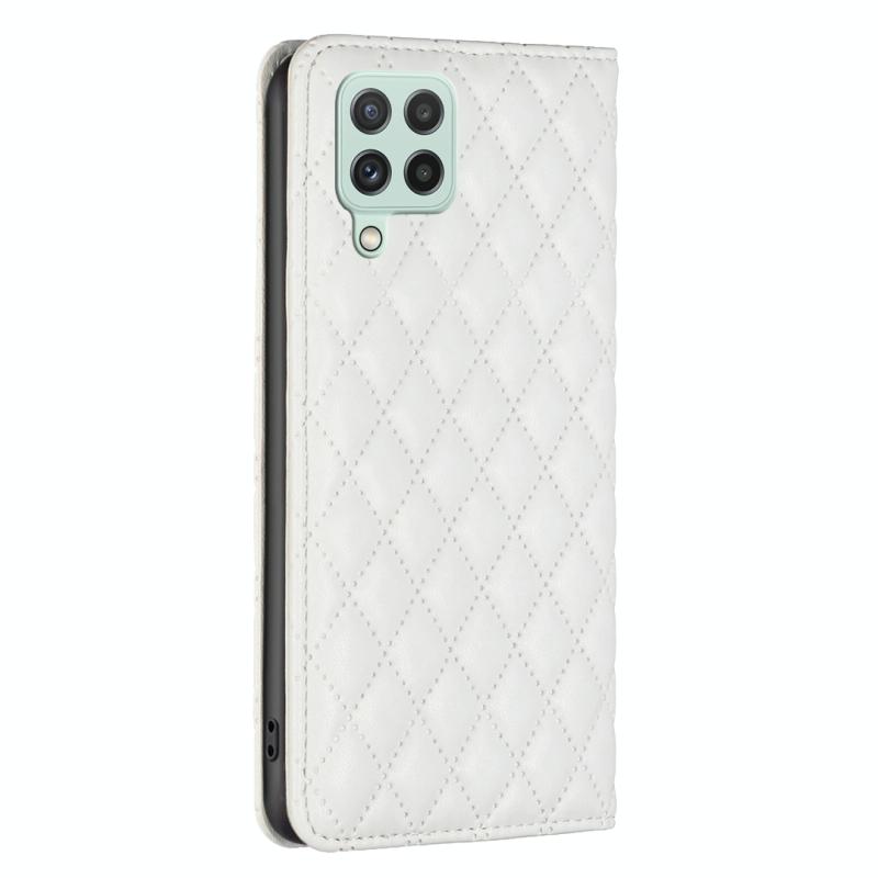 Θήκη τηλεφώνου Samsung Galaxy A22 4G, Δερμάτινη, Πτυσσόμενη, Μαγνητική, με σχέδιο Διαμαντόπλεγμα (Μαύρο)