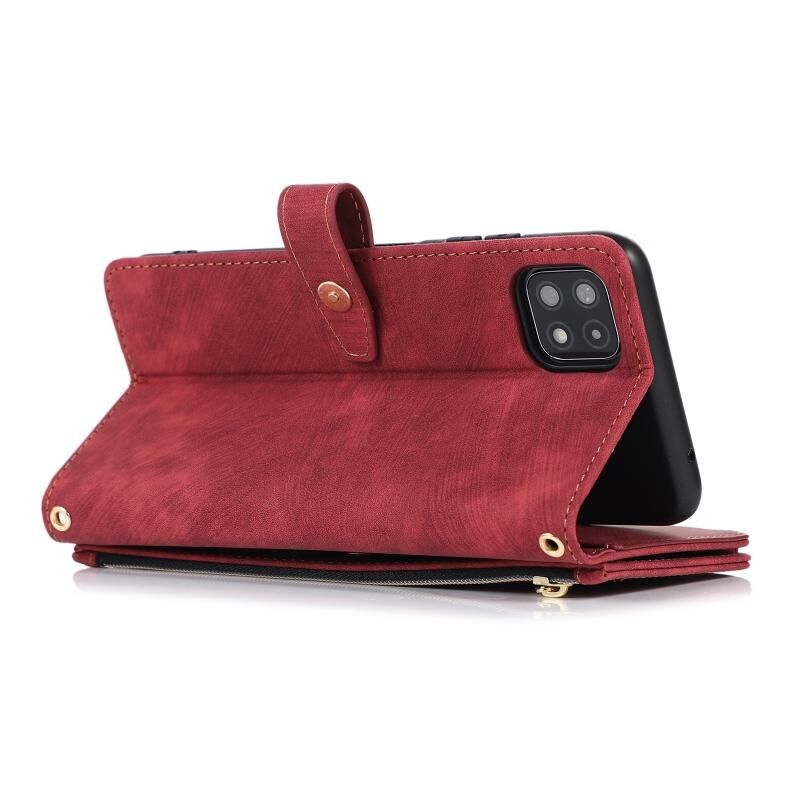 Για Samsung Galaxy A22 4G Dream 9-κάρτα πορτοφόλι φερμουάρ τσάντα δερμάτινη θήκη τηλεφώνου (Κόκκινο)