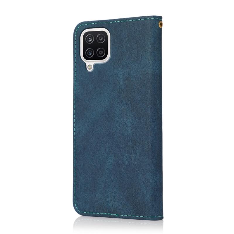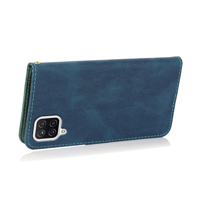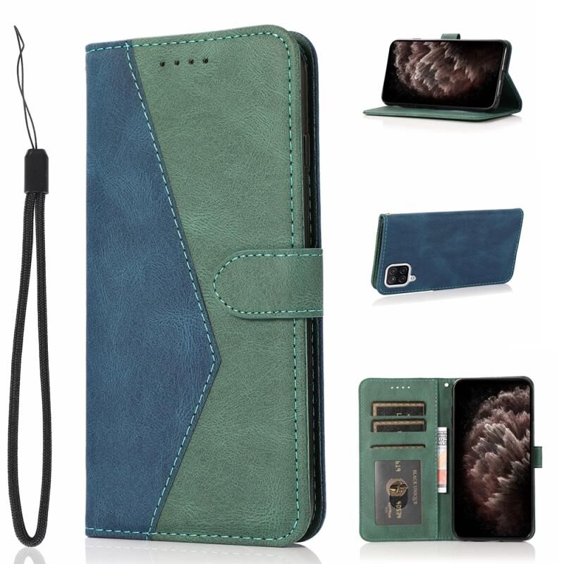 Θήκη τηλεφώνου δερμάτινη με διχρωμία ραφής για Samsung Galaxy A22 4G (Μπλε πράσινο)