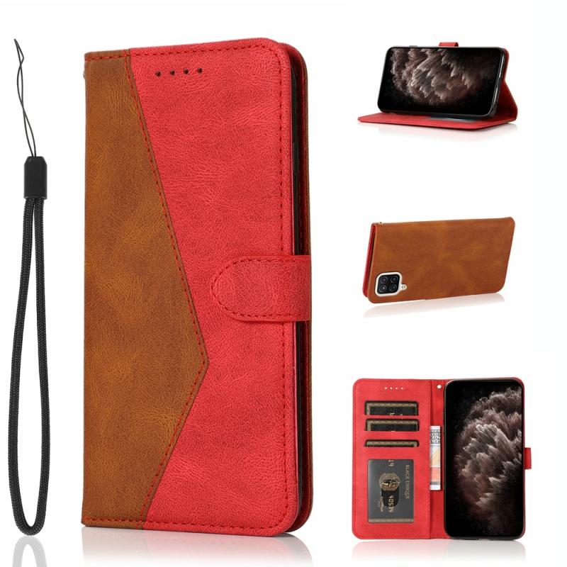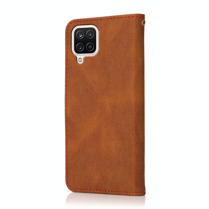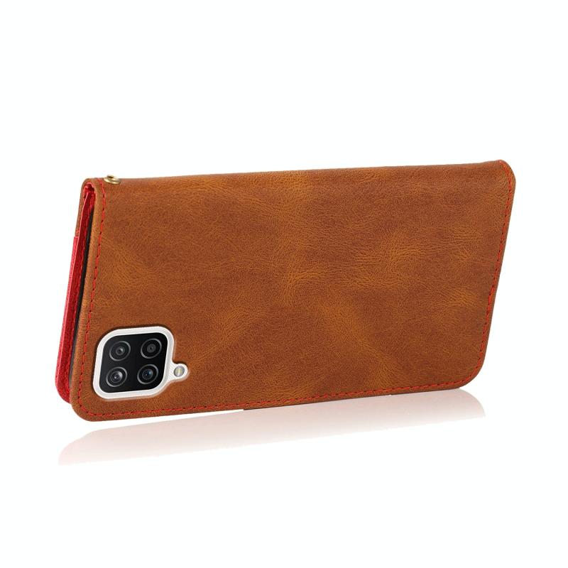 Θήκη τηλεφώνου δερμάτινη με διχρωμία ραφής για Samsung Galaxy A22 4G (Καφέ-κόκκινο)